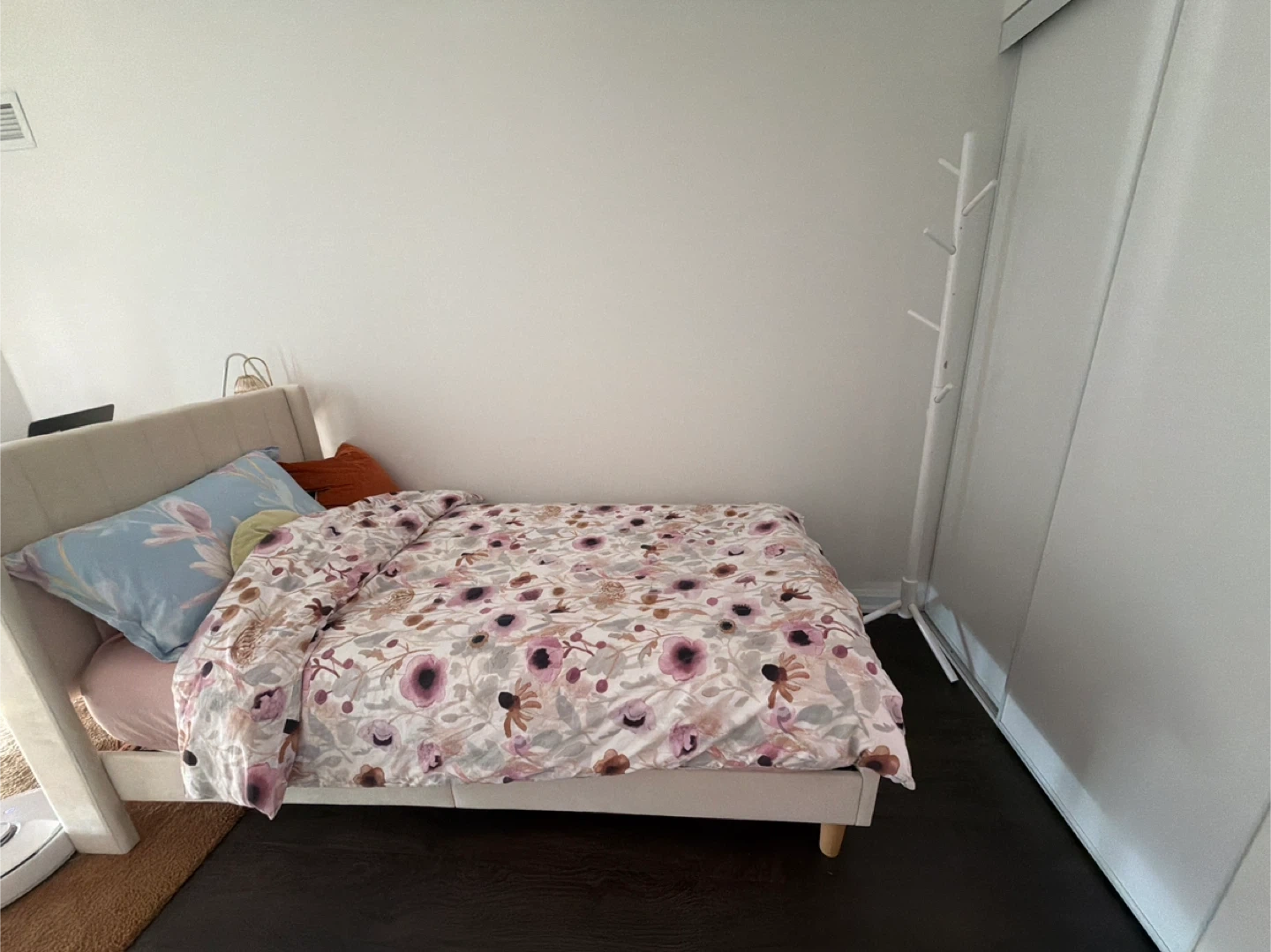 Selling a single bed frame with a stylish headboard. It’s in great condition and perfect for a bedroom or guest room. The bed frame has a neutral colour that matches any decor. I’m selling both the bed frame and mattress — the frame alone is $150 with matress 50$ I bought it last year both Purchased last year and used only a few times for a guest room, so it’s almost like new. Selling because I’m moving overseas. Pickup only. Thank you!