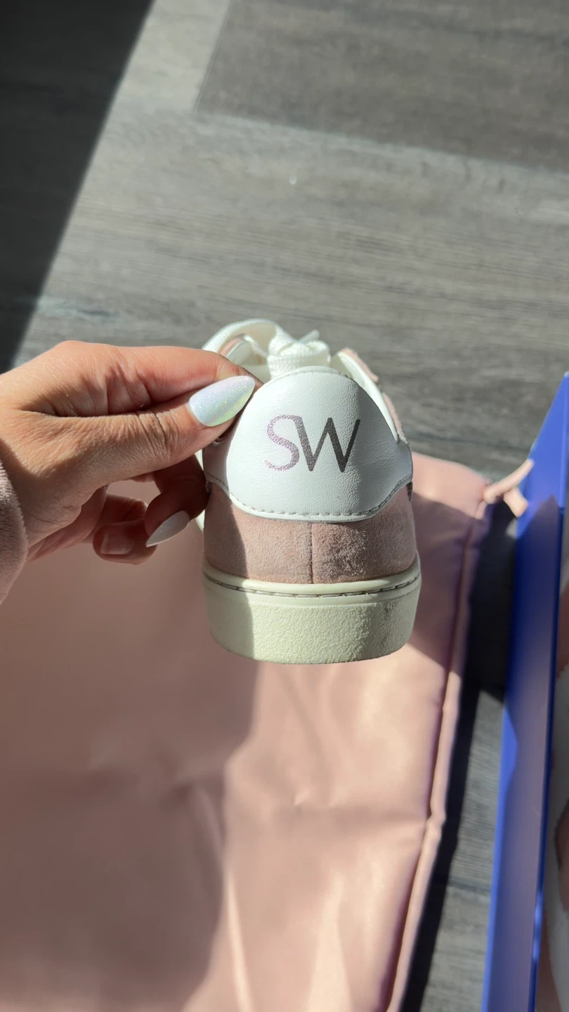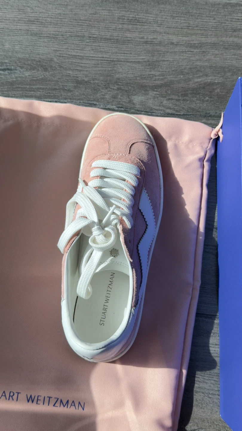 Stuart Weitzman pink suede sneakers in excellent condition! They come with the original box and dust bag. These stylish sneakers are perfect for adding a touch of colour to your casual outfits worn 1 time