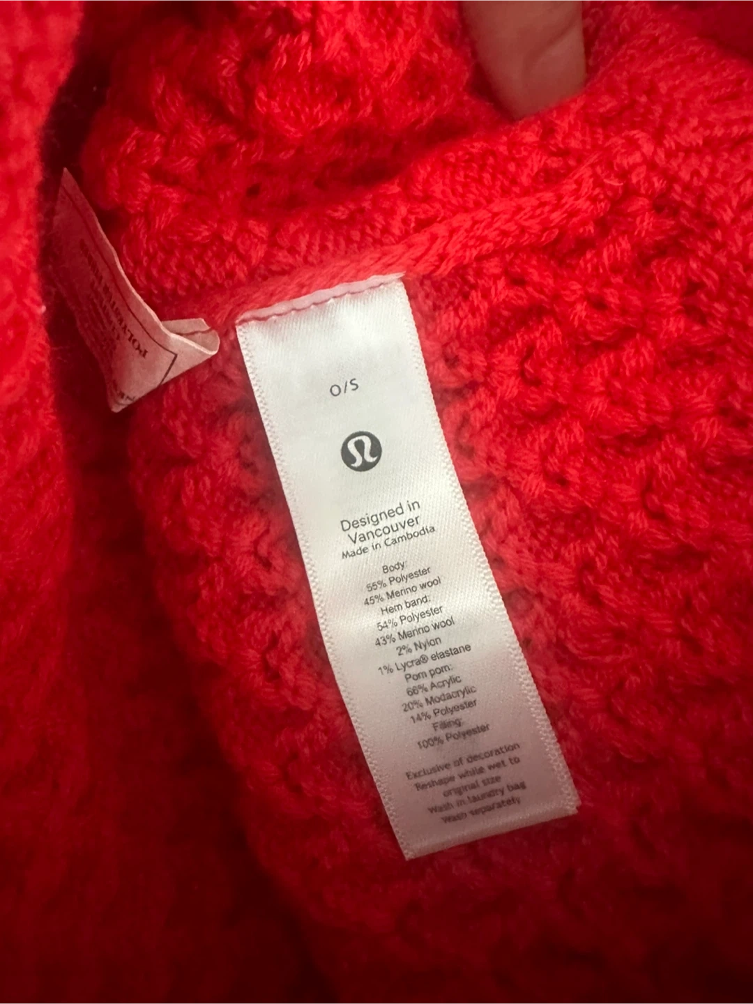 Brand new Cozy up with this vibrant red Lululemon beanie! It features a fun pom pom and is made with a blend of polyester, merino wool, and acrylic for warmth and comfort. The size is one size fits all (0/S)