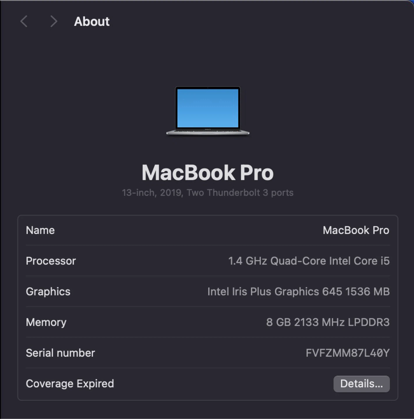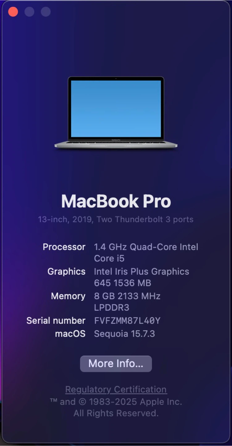 Apple MacBook Pro 13”, 2019, i5, 128GB