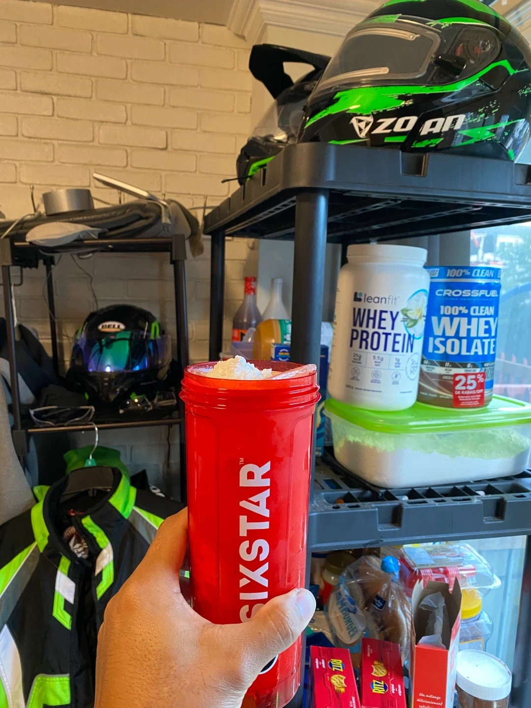 64Selling a red Six Star protein shaker bottle. Perfect for mixing your protein shakes after a workout!