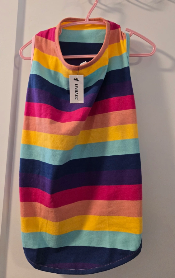Here's a fun and colourful rainbow striped tank top from LEI Basic for your furbaby! It's a size large .new..never been worn..its too big for my puppy..shes 15 pounds..pick up SE flats..new!