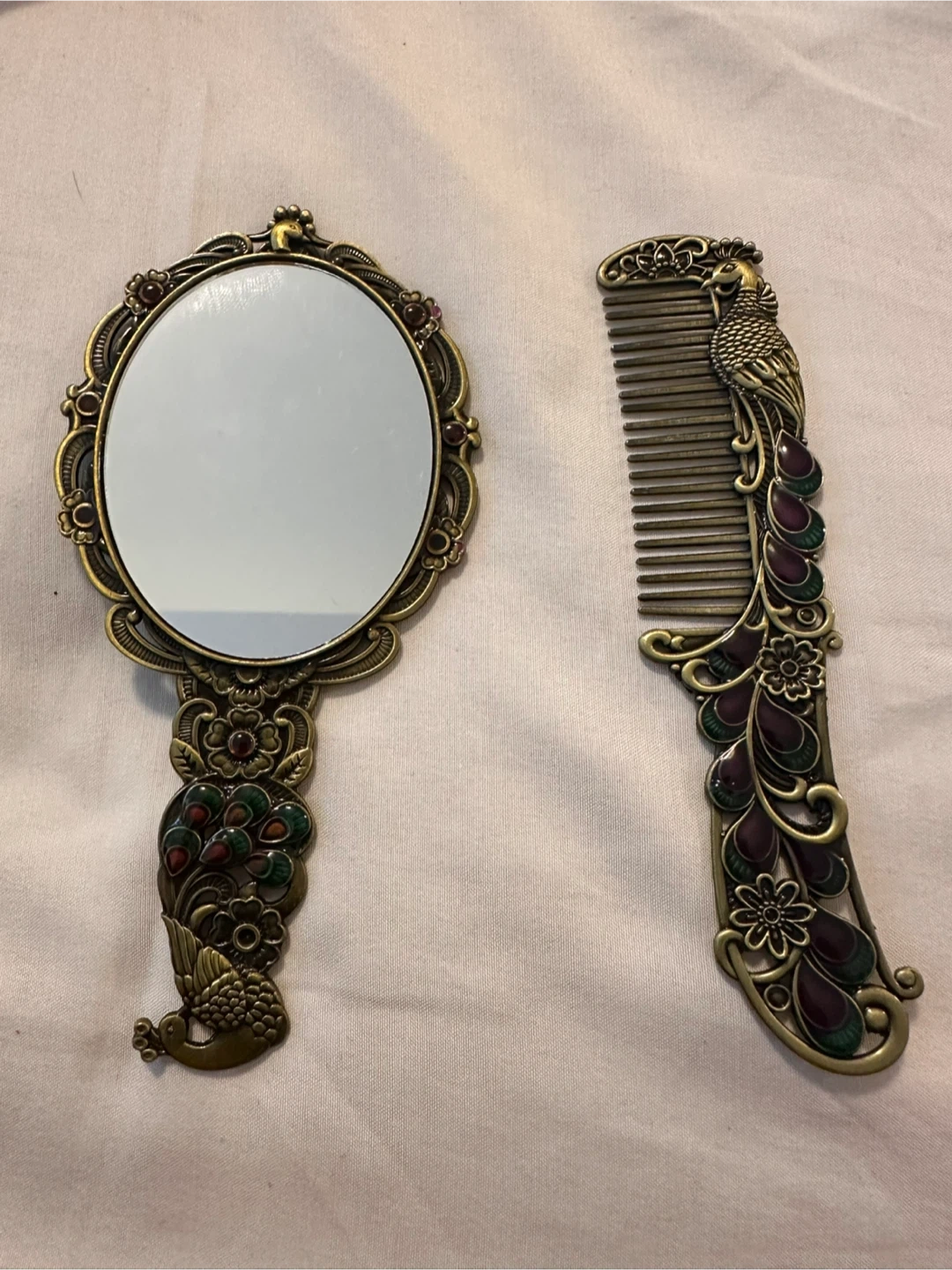 Antique Peacock Mirror and Comb Set