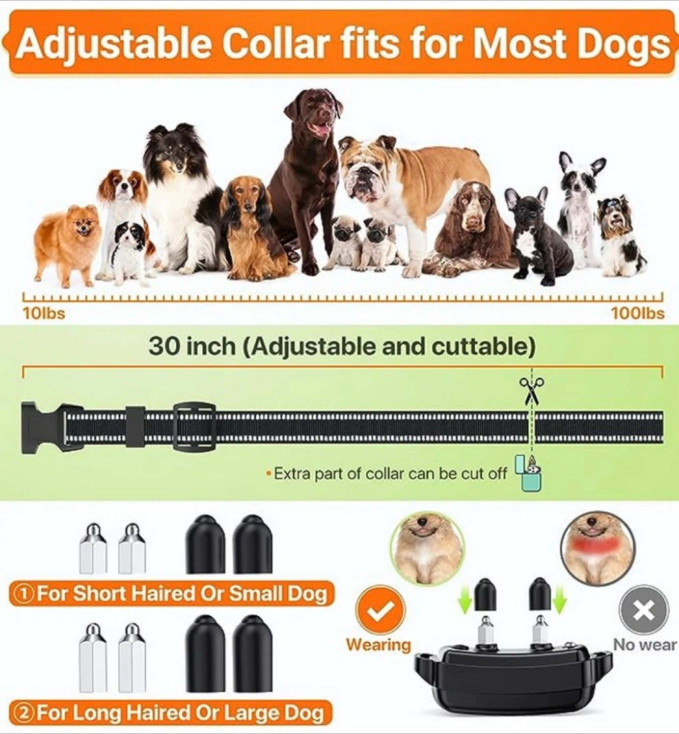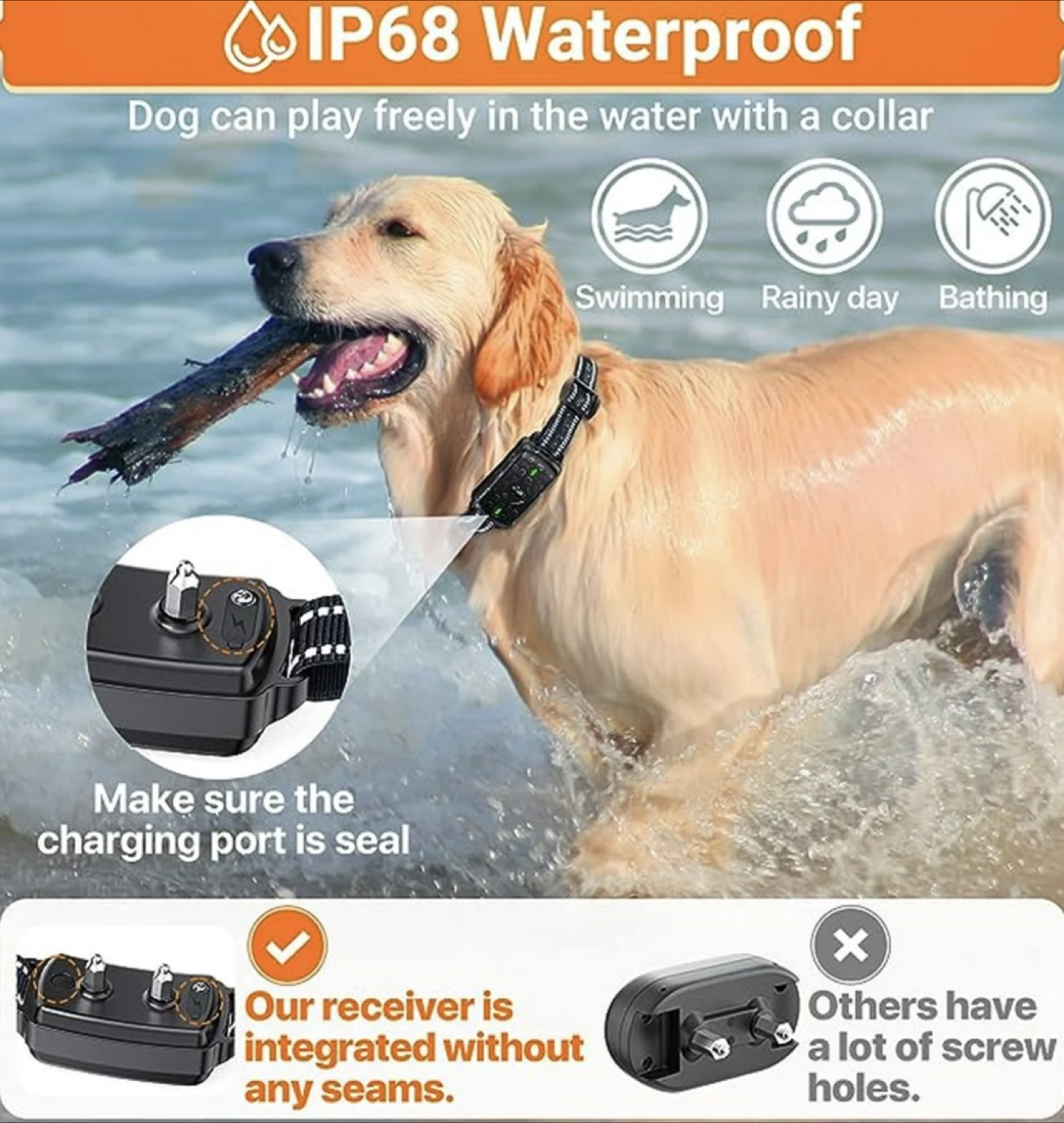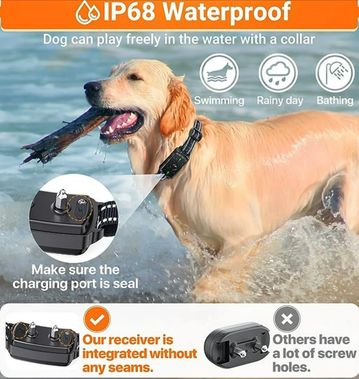 This brand new in box PEACHAR dog training collar features multiple training modes, including standard tone, vibration, shock, and a shock boost, with adjustable levels to suit your dog's needs. It’s also IP68 waterproof, so your dog can wear it while swimming or in the rain. The collar is adjustable up to 30 inches and can be cut to fit smaller dogs.