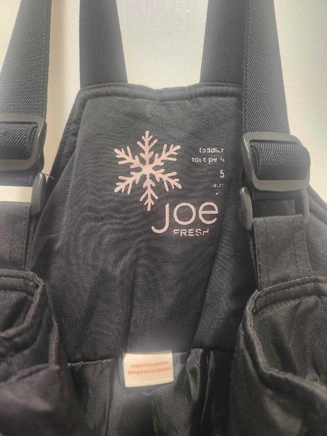 60These Joe Fresh size 5 black snow pants are perfect for keeping your little one warm and dry this winter! They are gently used but in great condition, ready for more snowy adventures. * Brand: Joe Fresh * Size: 5 * Colour: Black * Adjustable straps Snag these pants before the snow flies! And just so you know, if the ad's up, they're available!