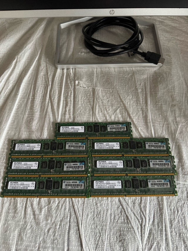 4GB DDR3 1333MHz CL9 server RAM (7 sticks, fully functional) — $5 each or $35 for all
