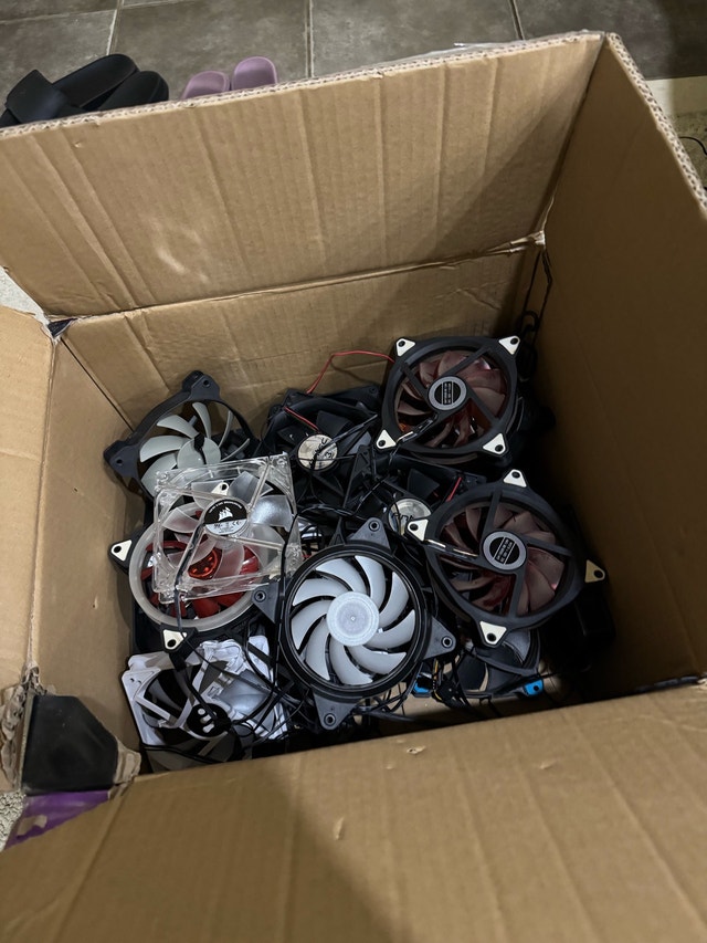 Box full of PC case fans — $1 a piece $25 for all