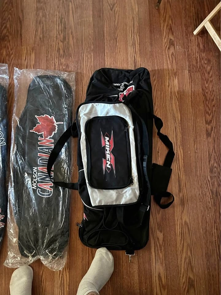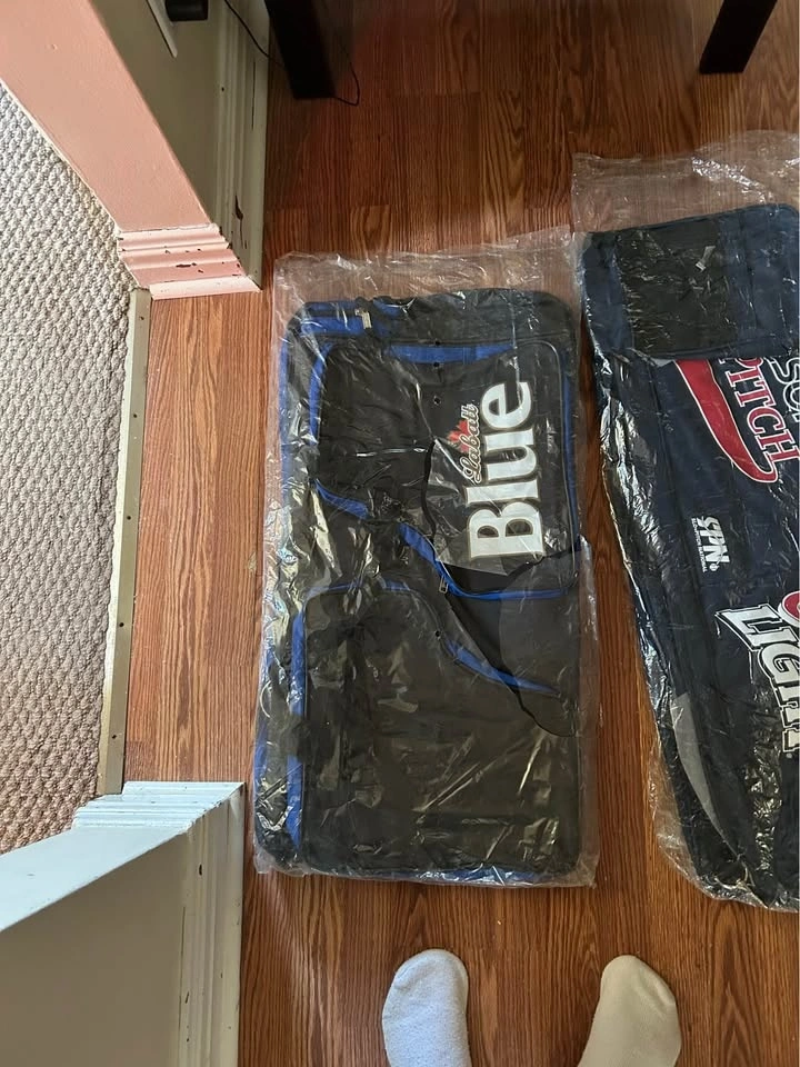 Vintage Molson Canadian baseball bat bag - $25. Vintage Coors Light baseball bat bag - $25. Vintage Labatts Blue hockey bag - $50.
