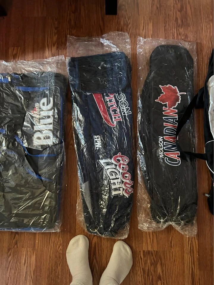 Vintage Molson Canadian baseball bat bag - $25. Vintage Coors Light baseball bat bag - $25. Vintage Labatts Blue hockey bag - $50.