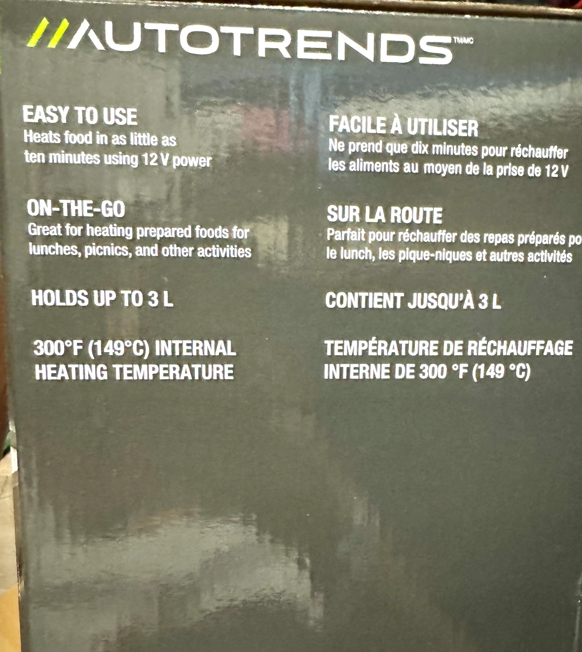 Heats food in as short as 10mins using 12V power