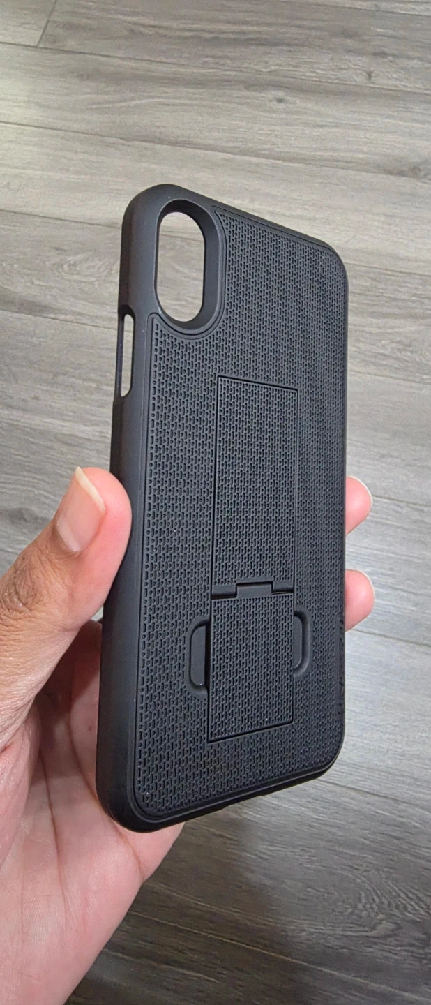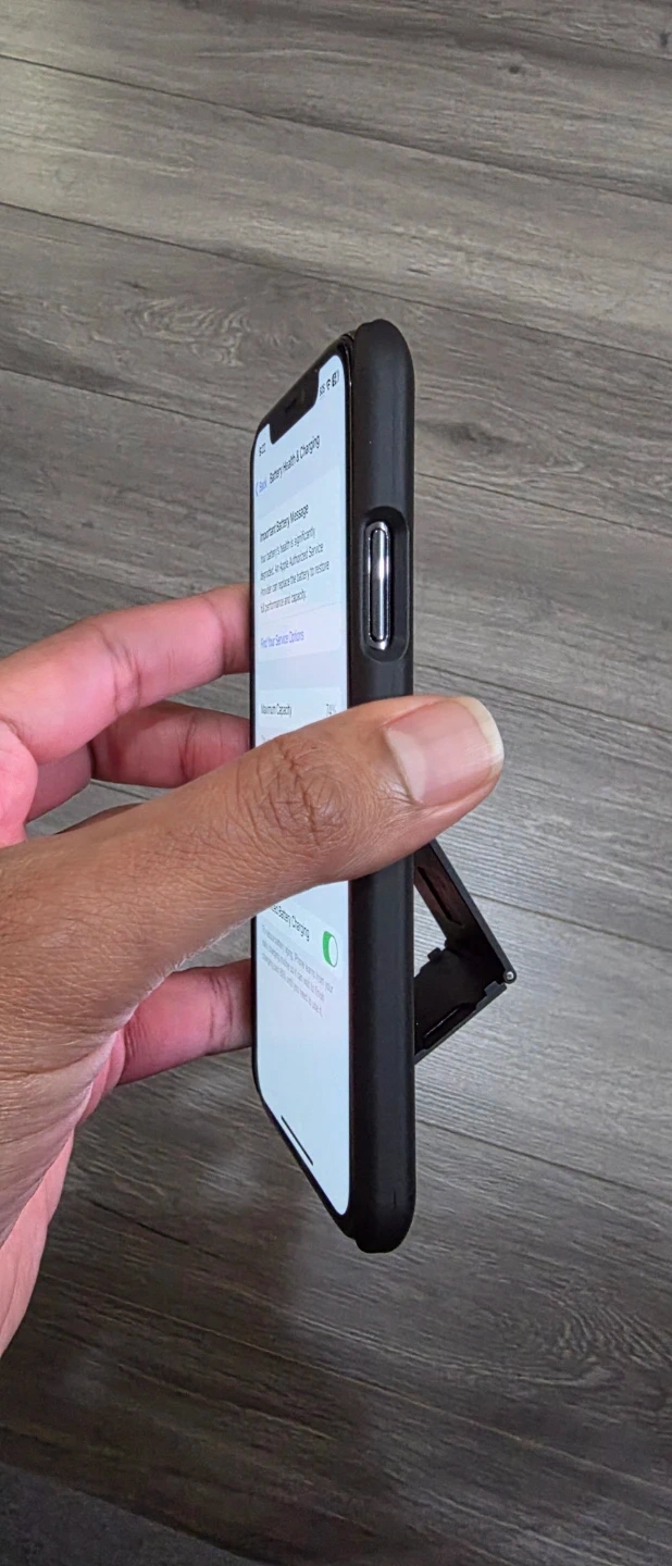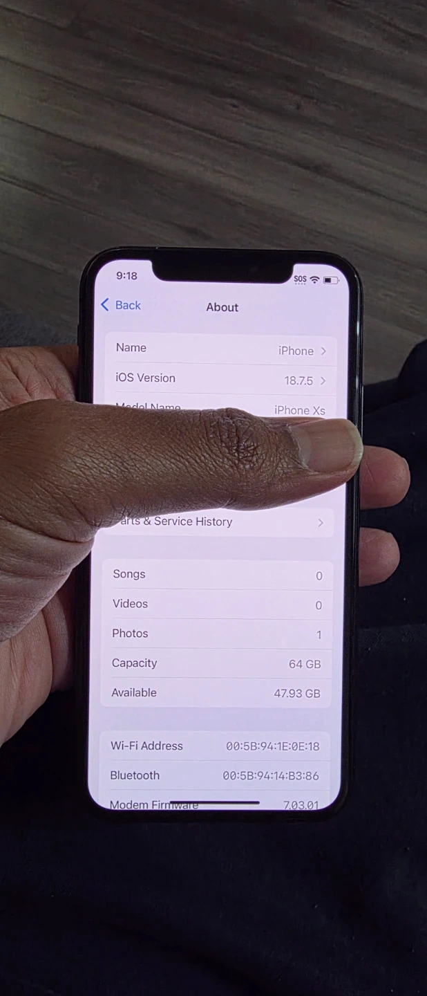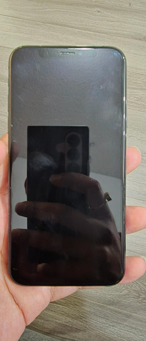 An Apple iPhone XS smartphone. It's a dark grey model. It has a dual-camera system on the back. This phone is great for everyday communication and taking photos!
