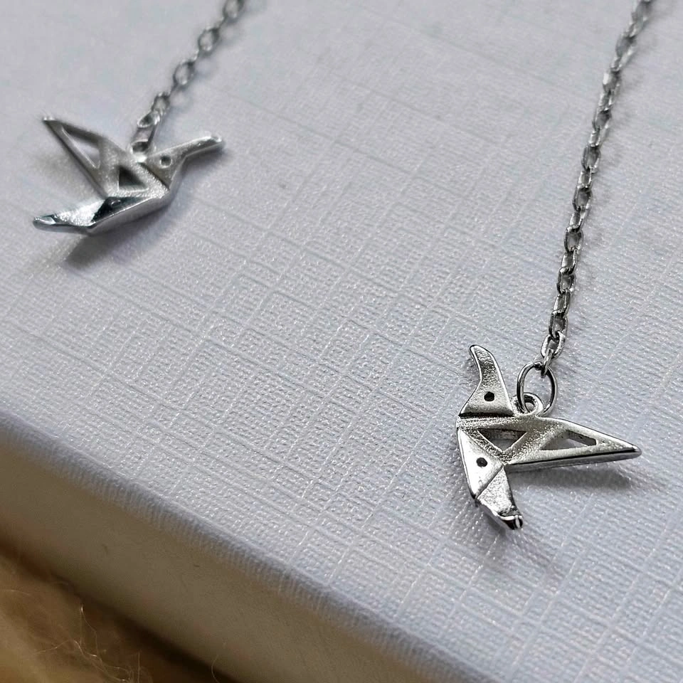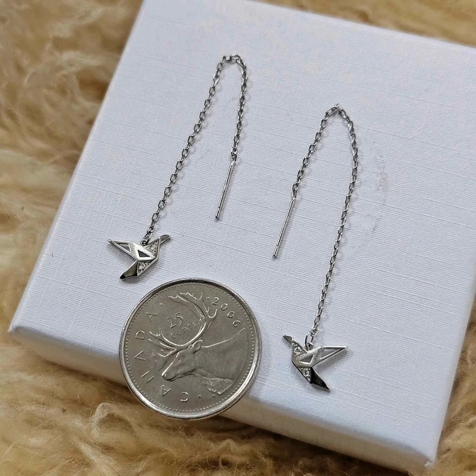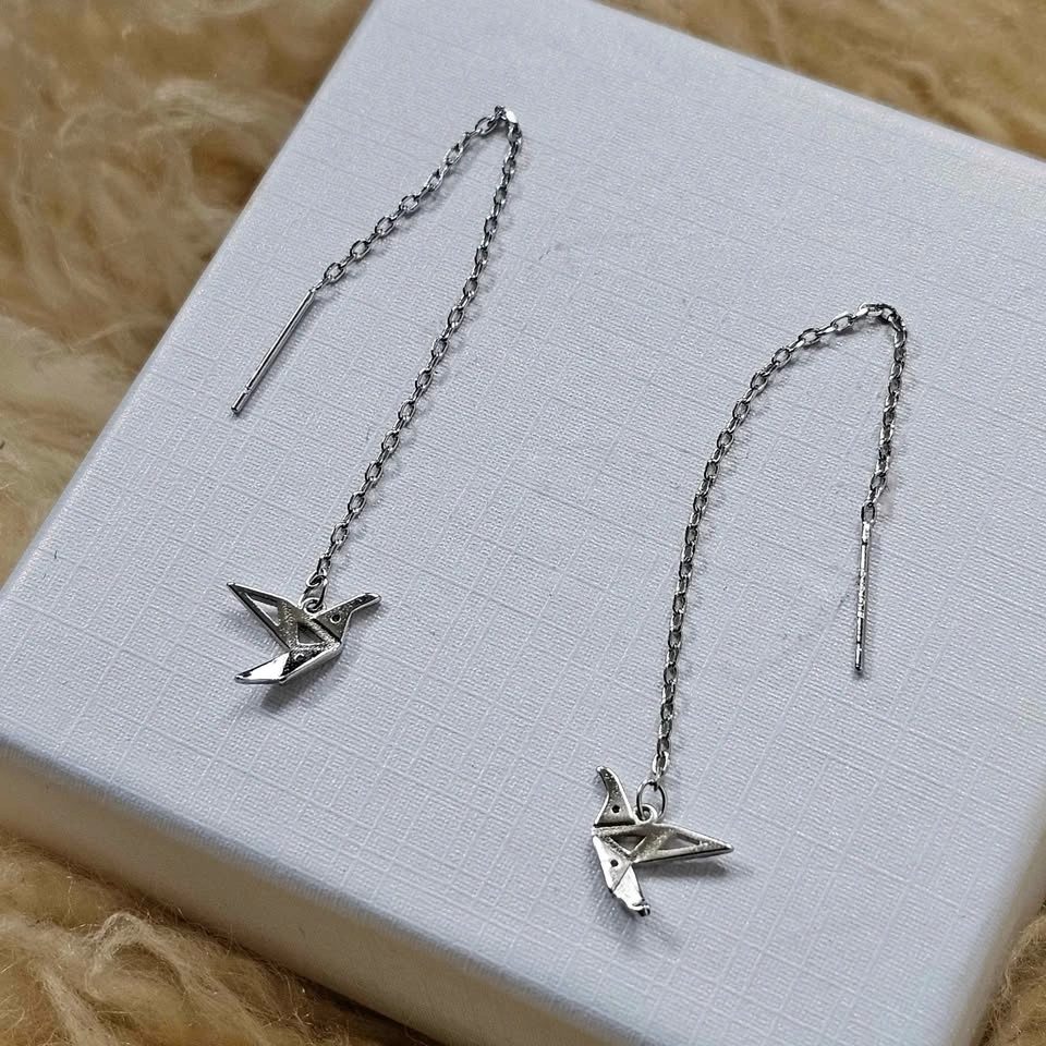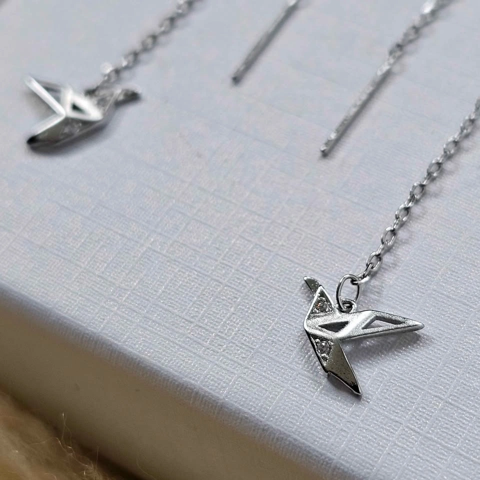 925 Sterling Silver Origami Crane Threader Earrings