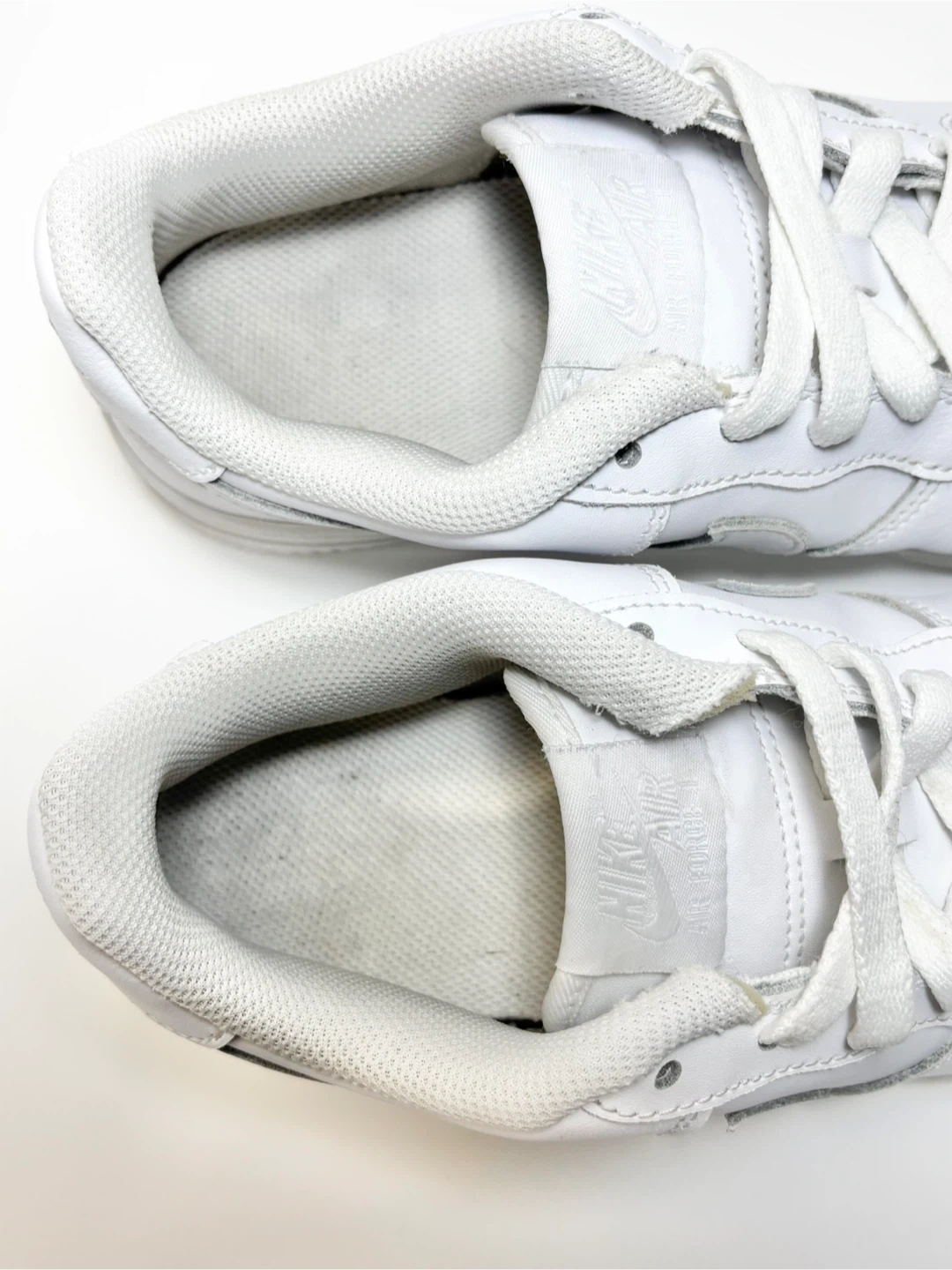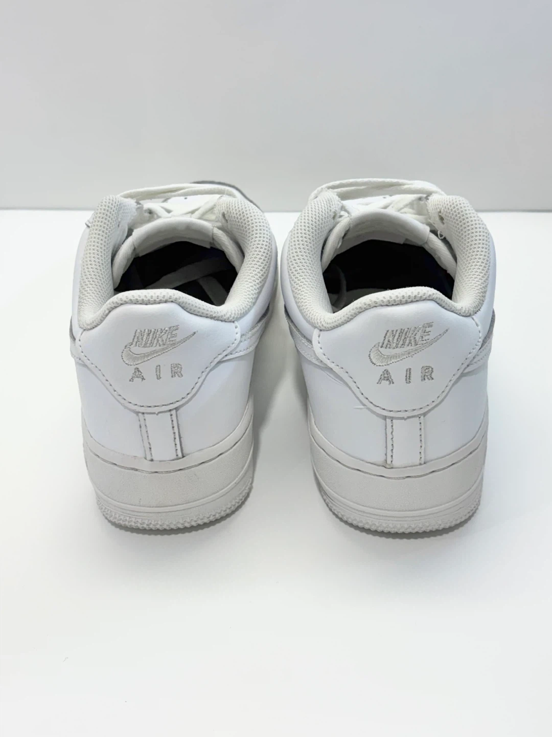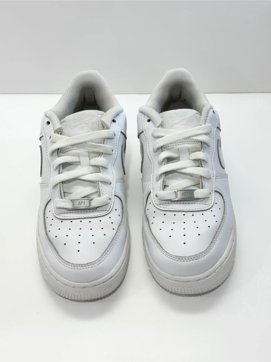 Classic white Nike Air Force 1 sneakers.