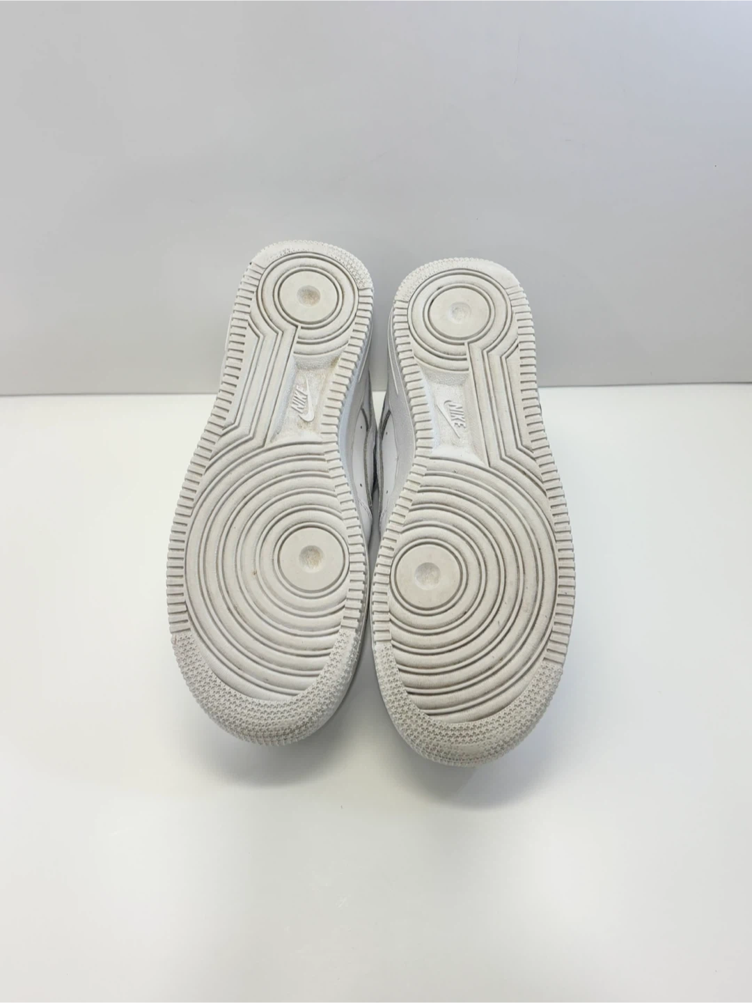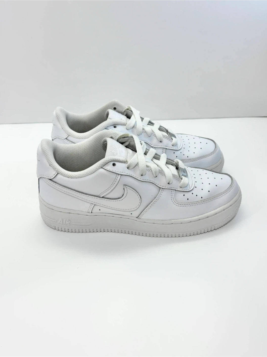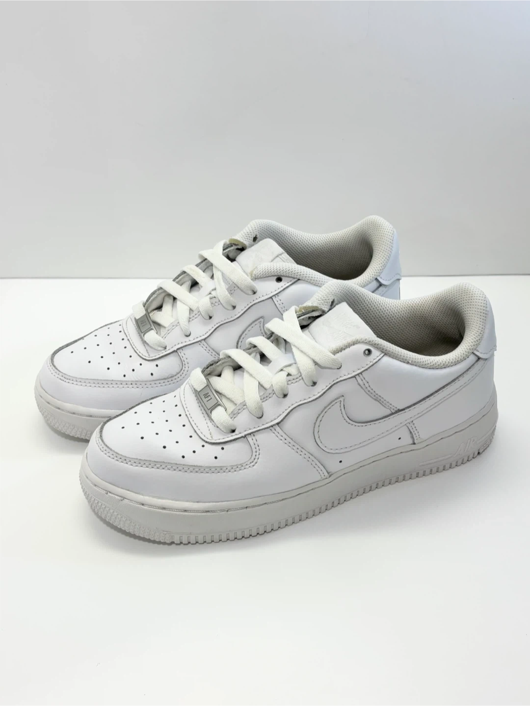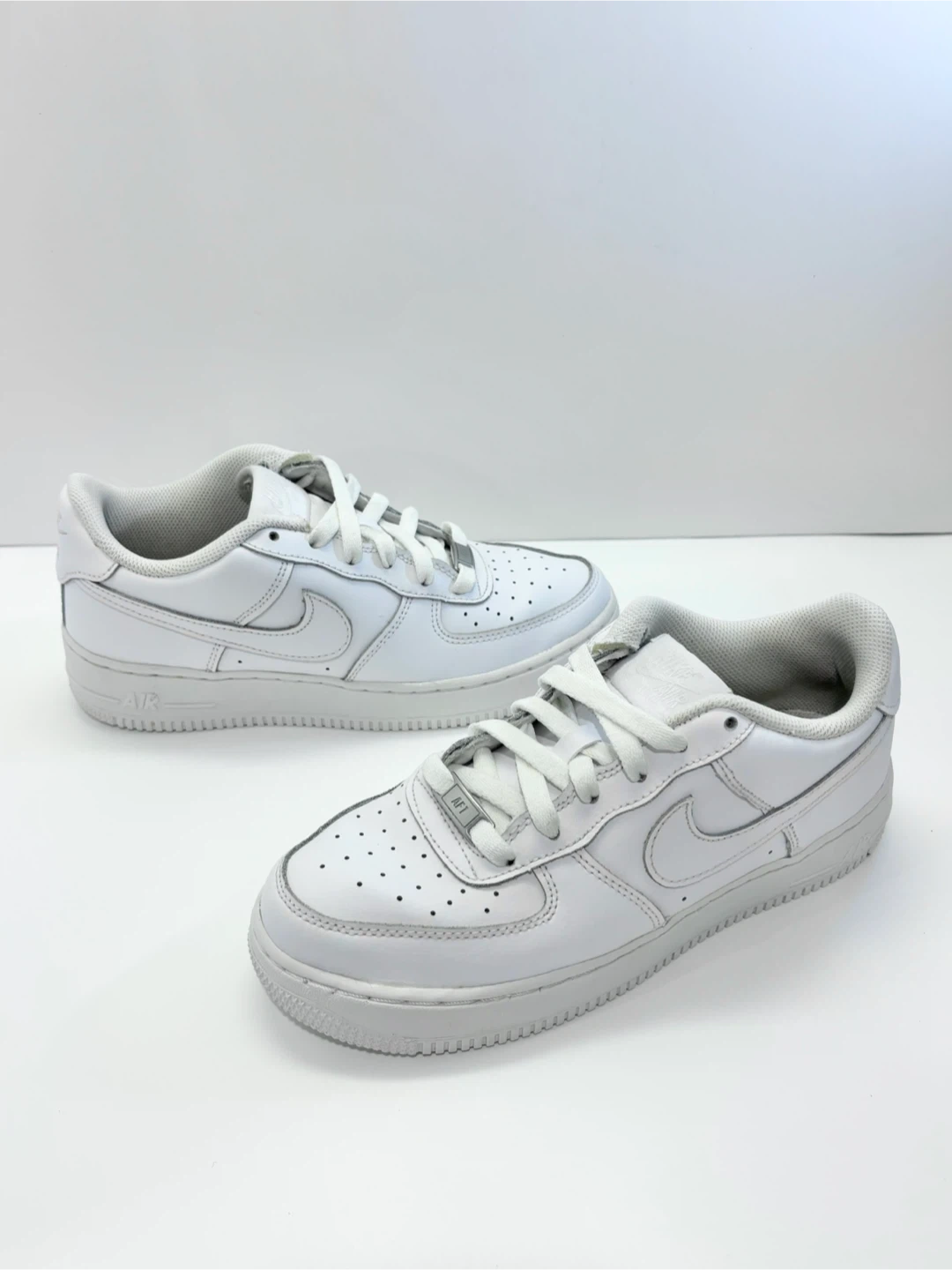 Classic white Nike Air Force 1 sneakers.