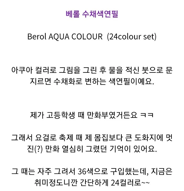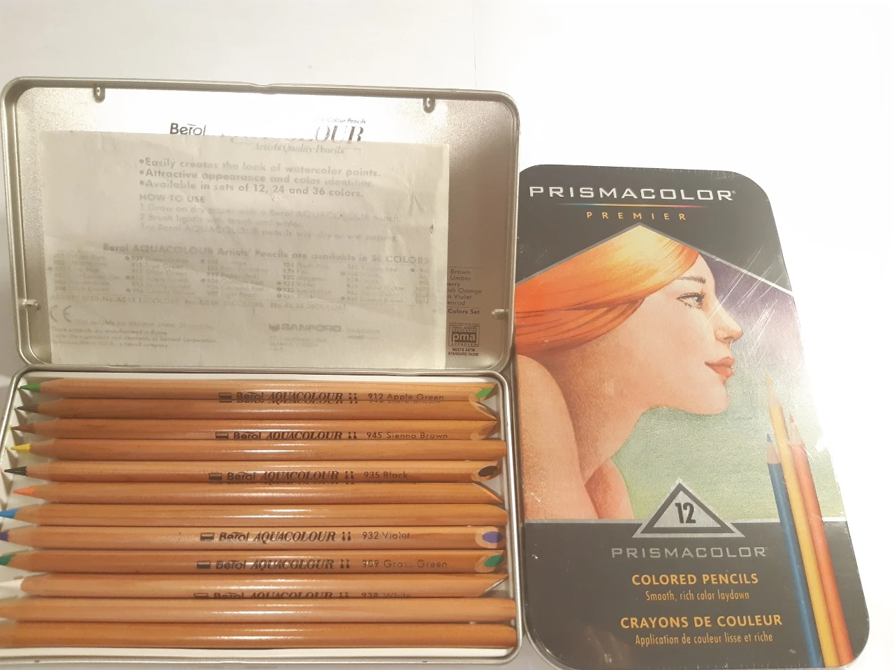 Prismacolor & Dong-A Berol Aquacolor 고급 색연필 2세트 1. Prismacolor 12색 색연필은 비닐포장조차 뜯지 않은 그대로의 미개봉 신상품입니다. 하여 내부 내용물은 캡쳐본으로 대체.  2. Dong-A Berol Aquacolor(동아 베롤 아쿠아) 12색 색연필은 그림을 그리고 그위에 붓으로 물을 덧입히면 수채화처럼 표현되는 특수한 색연필입니다. 신기해서 2가지 색상만 확인을 위해 아주 조금 사용해봤습니다. 제 가격은 30불 입니다. 2개 세트로만 판매하며 세트가격입니다. 픽업장소는 버나비의 Moscrop Secondary School 주차장 입니다.