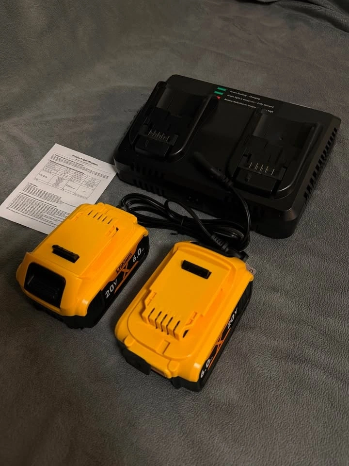 Dewalt replacement aftermarket battery. Best price and super reliable. Price is firm. Also can take bulk orders. On amazon the product is almost 90. Battery Specification: Model DCB206-2, Lithium-ion, 20V, 6000mAh. Compatible for All Dewalt 20V Batteries and Power Tools. Charger Specification: DCB102 Fast Charger, INPUT: 100-240V~ 120W 50-60Hz; OUTPUT: 20V MAX=4A. Compatible with DeWalt 12V/20V/60V Batteries and Supports Fast Charging. The Battery is Equipped with High-Quality Li-ion Cells, Offering Over 1000+ Cycles Safe Use. After 730 cycles, It Retains 85% of Its Initial Capacity.