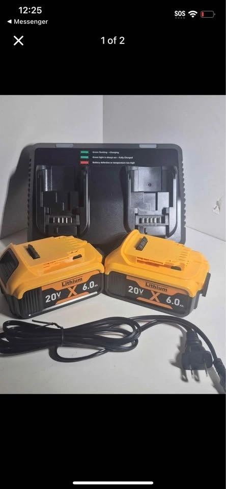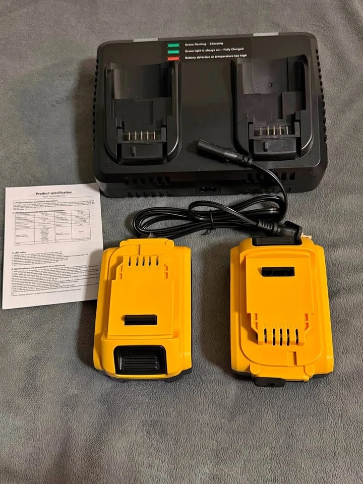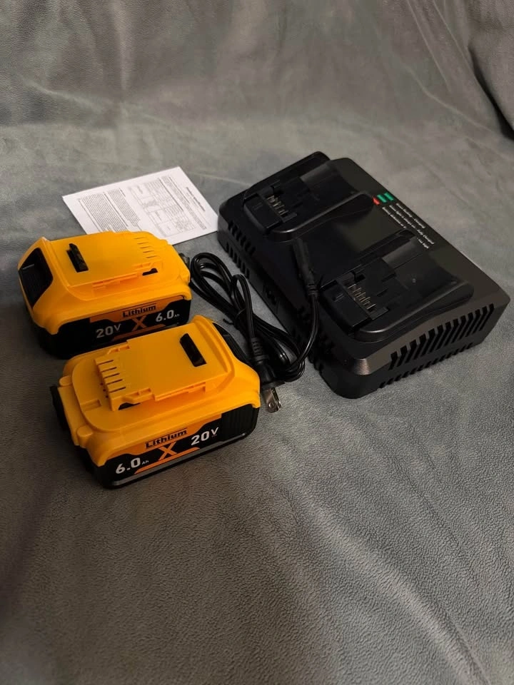 Dewalt replacement aftermarket battery. Best price and super reliable. Price is firm. Also can take bulk orders. On amazon the product is almost 90. Battery Specification: Model DCB206-2, Lithium-ion, 20V, 6000mAh. Compatible for All Dewalt 20V Batteries and Power Tools. Charger Specification: DCB102 Fast Charger, INPUT: 100-240V~ 120W 50-60Hz; OUTPUT: 20V MAX=4A. Compatible with DeWalt 12V/20V/60V Batteries and Supports Fast Charging. The Battery is Equipped with High-Quality Li-ion Cells, Offering Over 1000+ Cycles Safe Use. After 730 cycles, It Retains 85% of Its Initial Capacity.