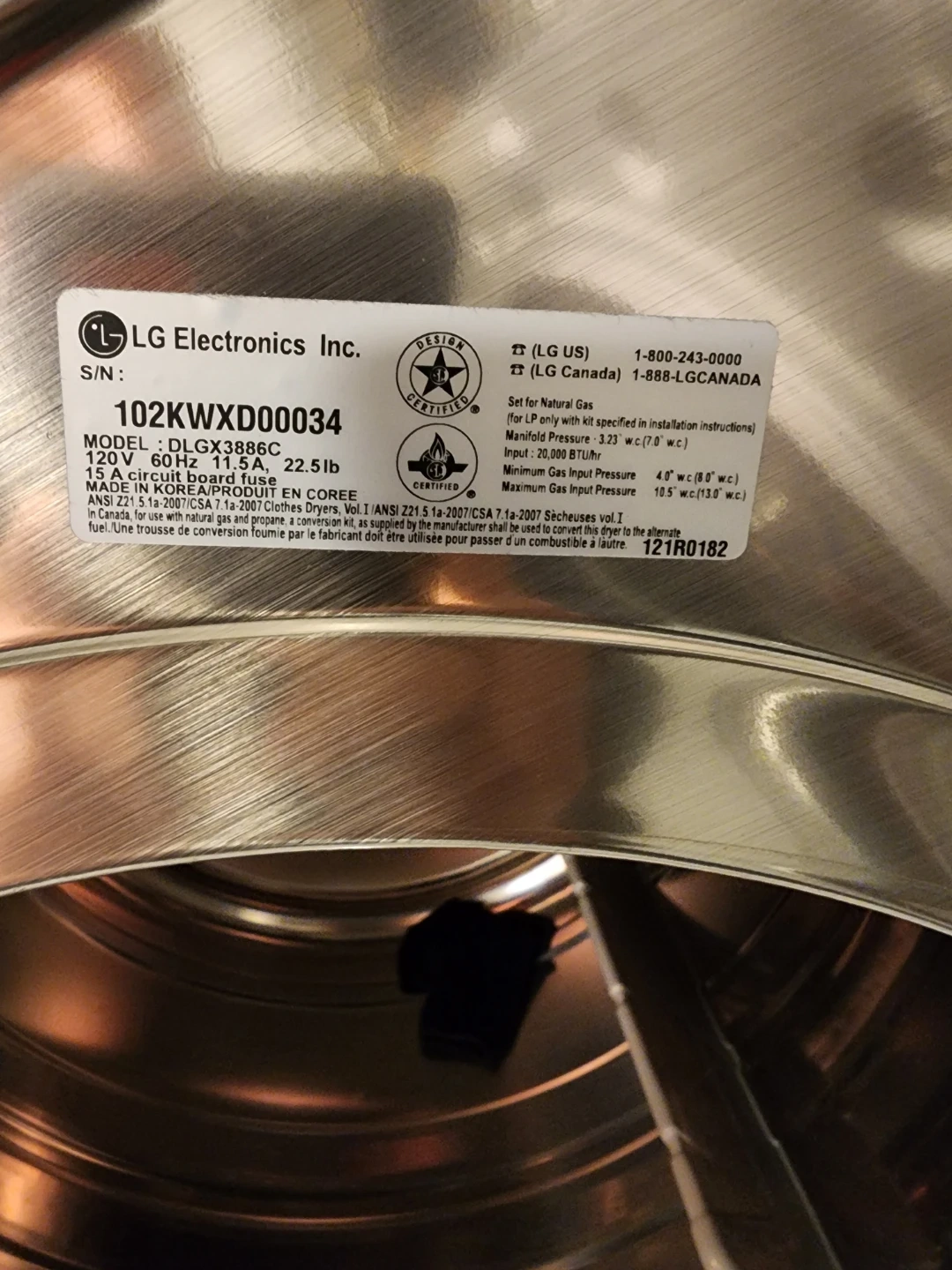 LG true steam Front Load Washer + Gas Dryer Set. Delivery.