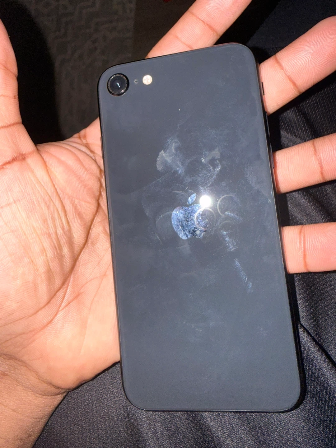 Used Apple iPhone SE 2020. It does not turn on(idk what’s the problem) and I don’t have an original iPhone charger for it either. If anyone wants to take a crack at it. DM me!