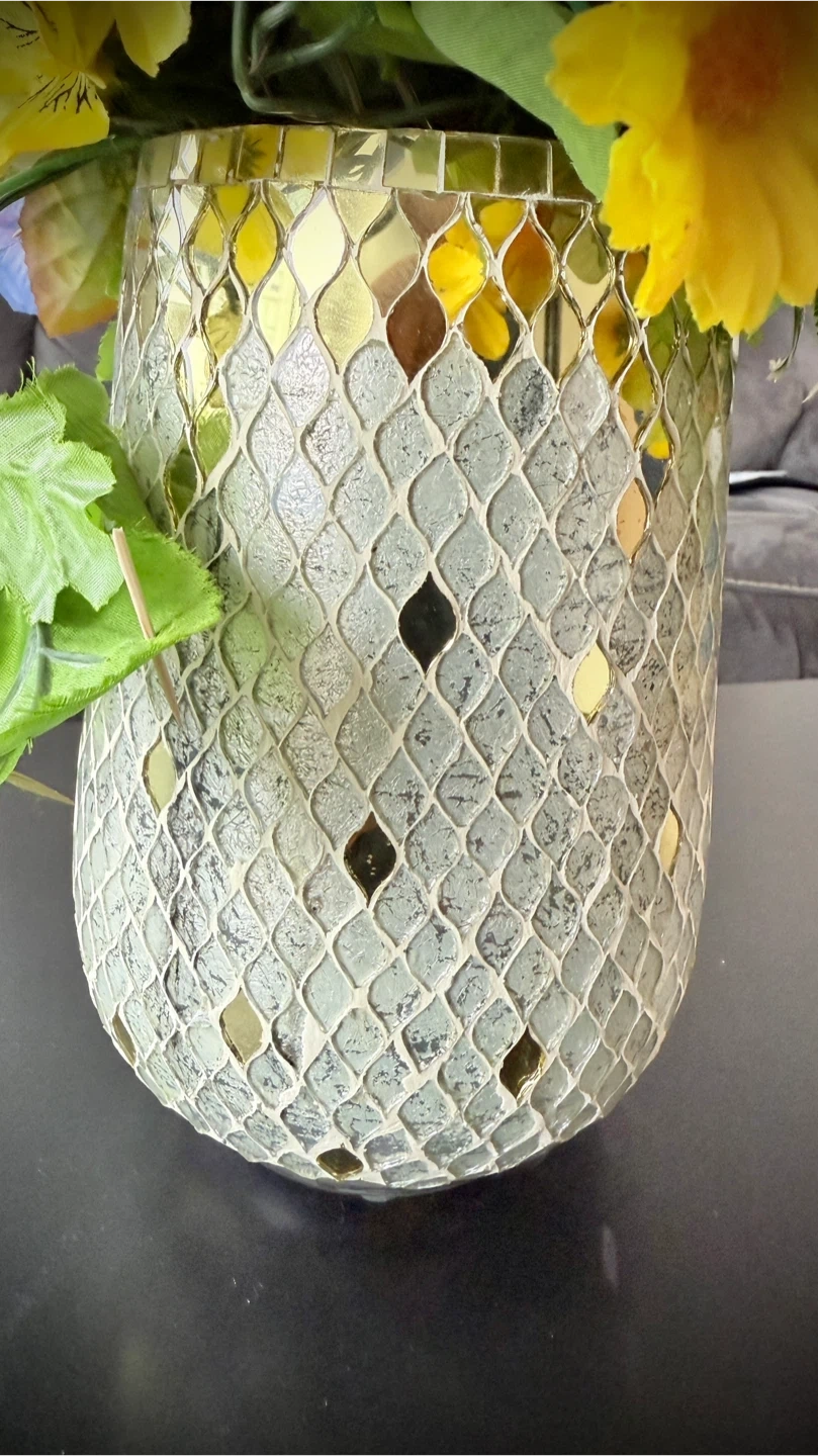 Mosaic Glass Vase with Faux Flowers