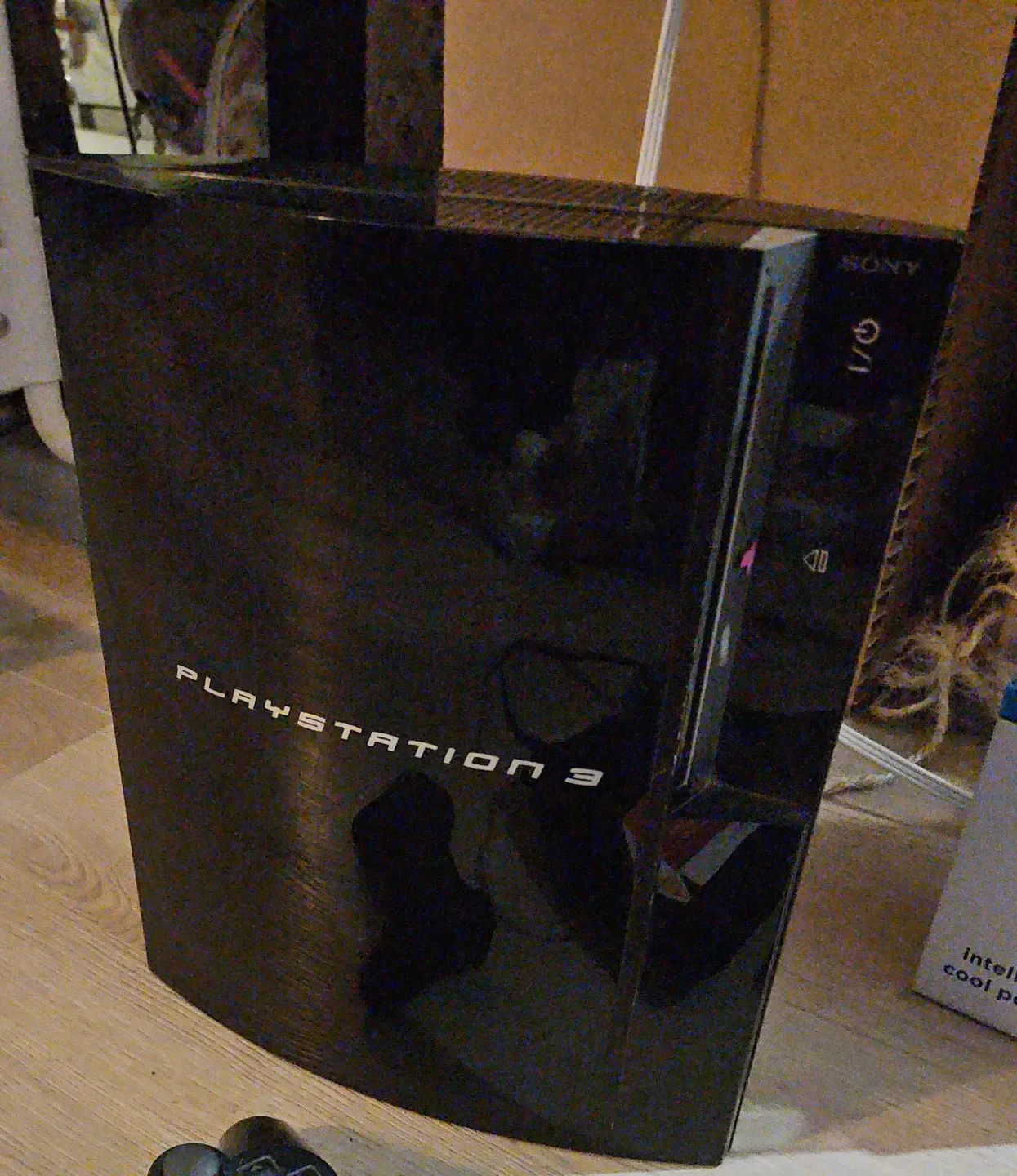 This is a black Sony PlayStation 3 console. It's a gaming system. It comes with a controller. Selling as is proven is firm