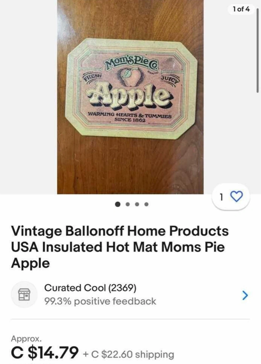 $12 Vintage (1979) Ballonoff hot mat mom’s pie apple.