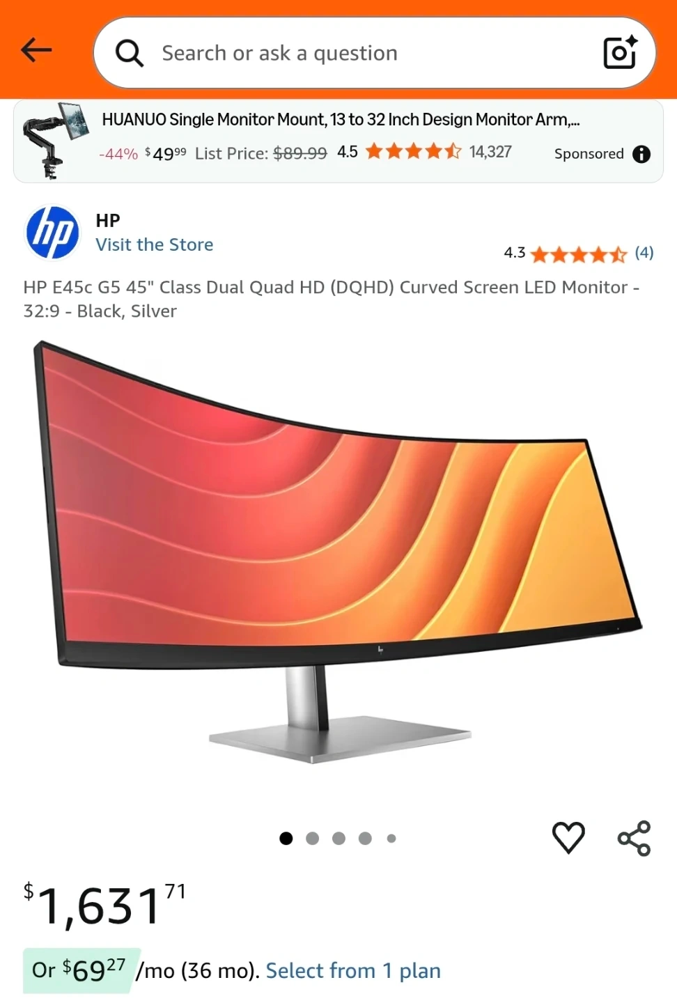 This is a HP E45c G5 45-inch curved screen monitor with in-built KVM switch (no need for any external kvm device). Includes original box and accessories.