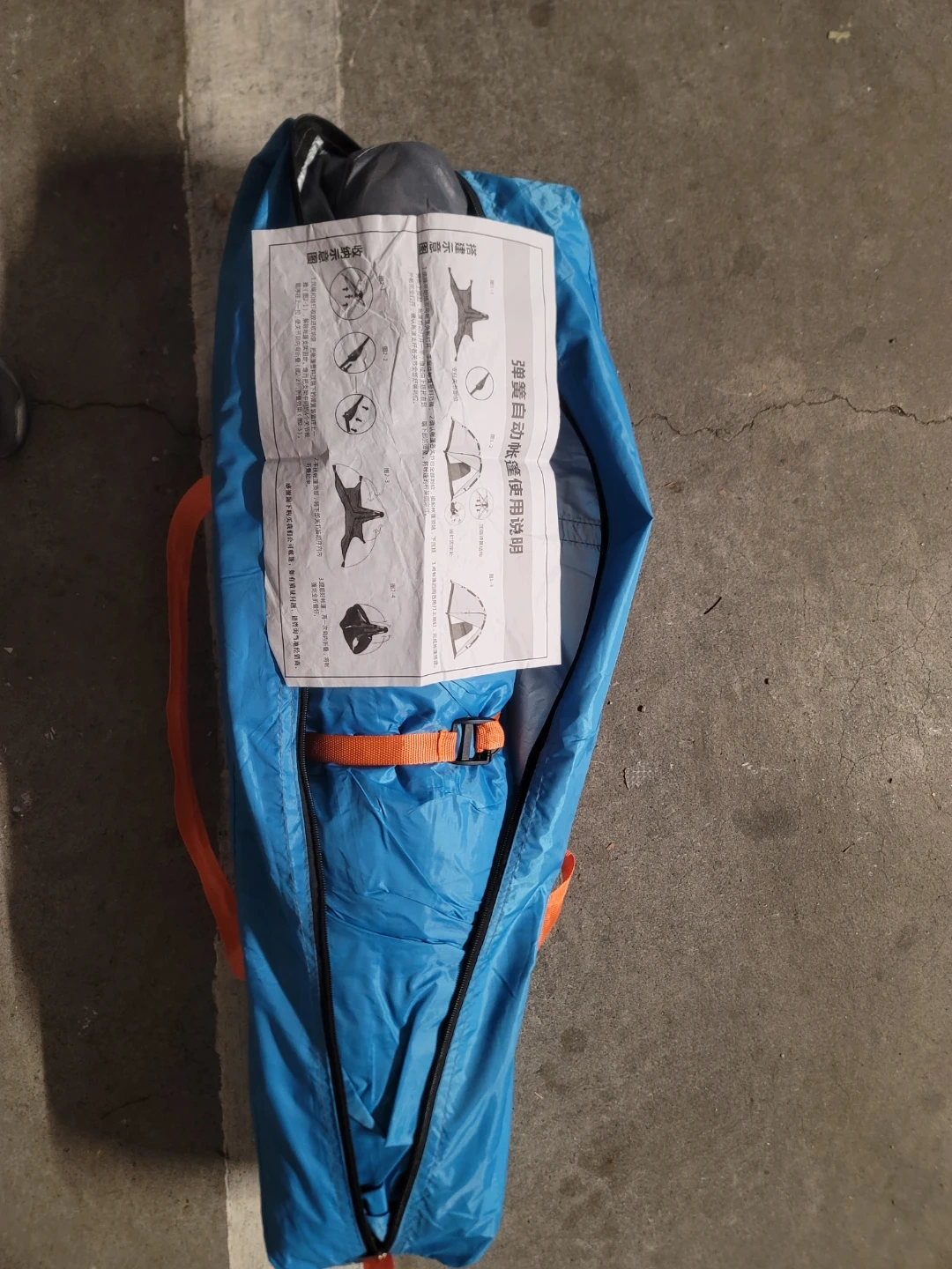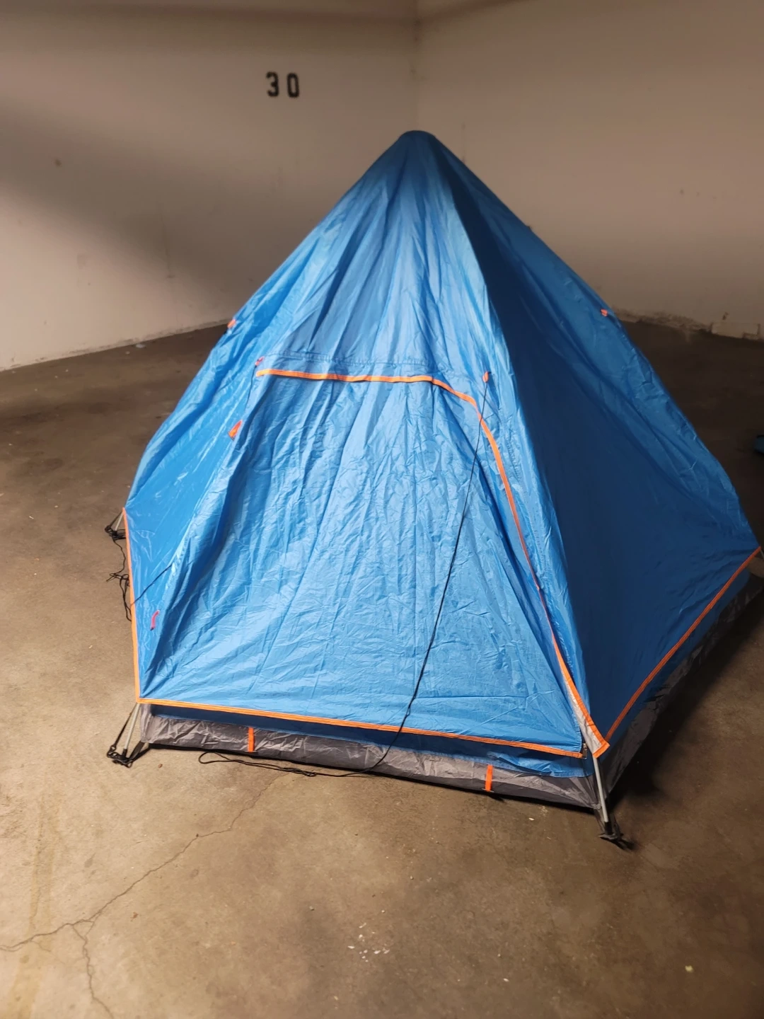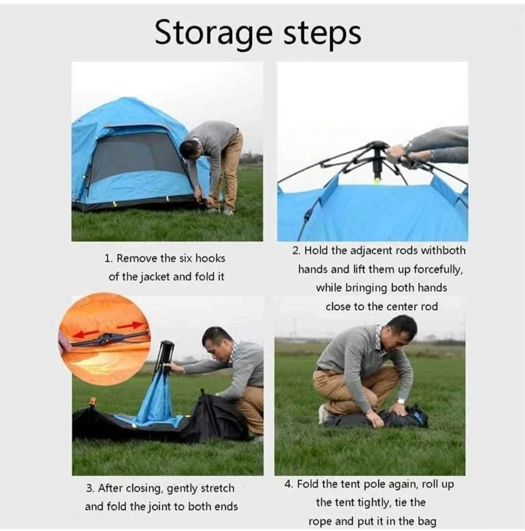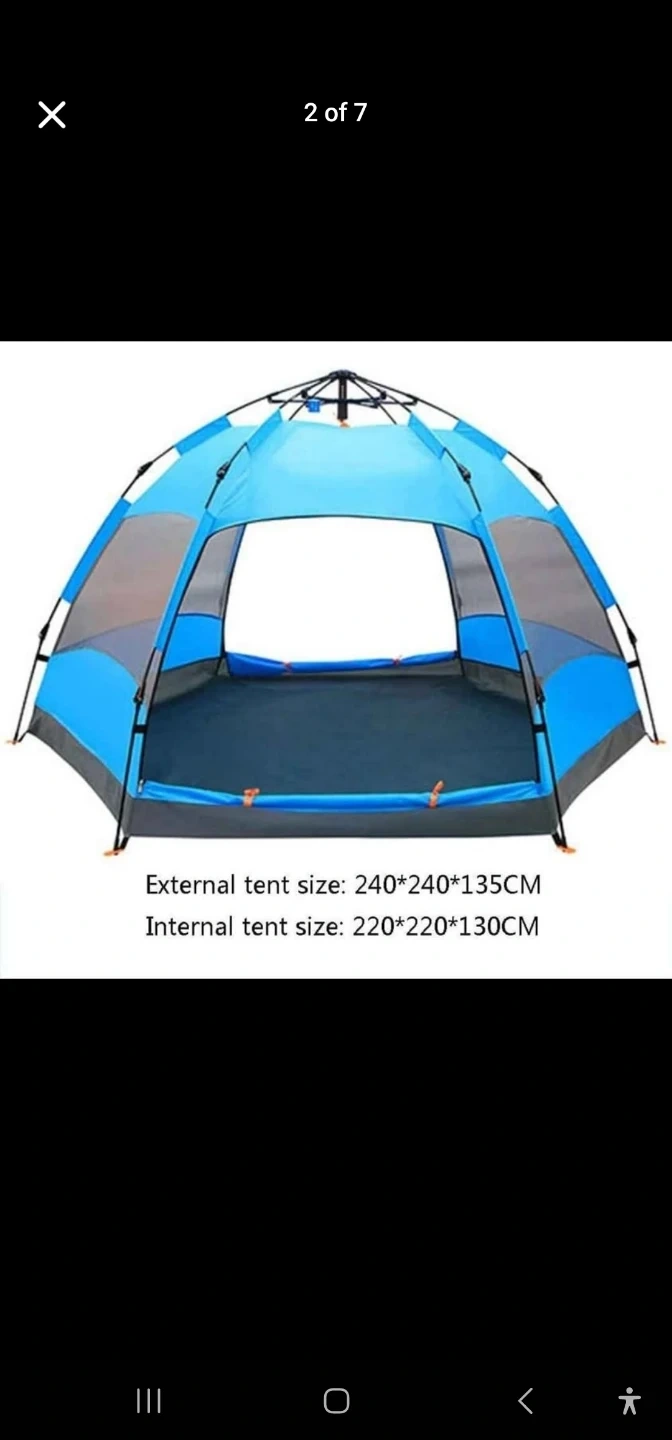 This is a blue pop-up tent with external dimensions of 240x240x135cm and internal dimensions of 220x220x130cm. It's easy to set up and take down,in the minutes.