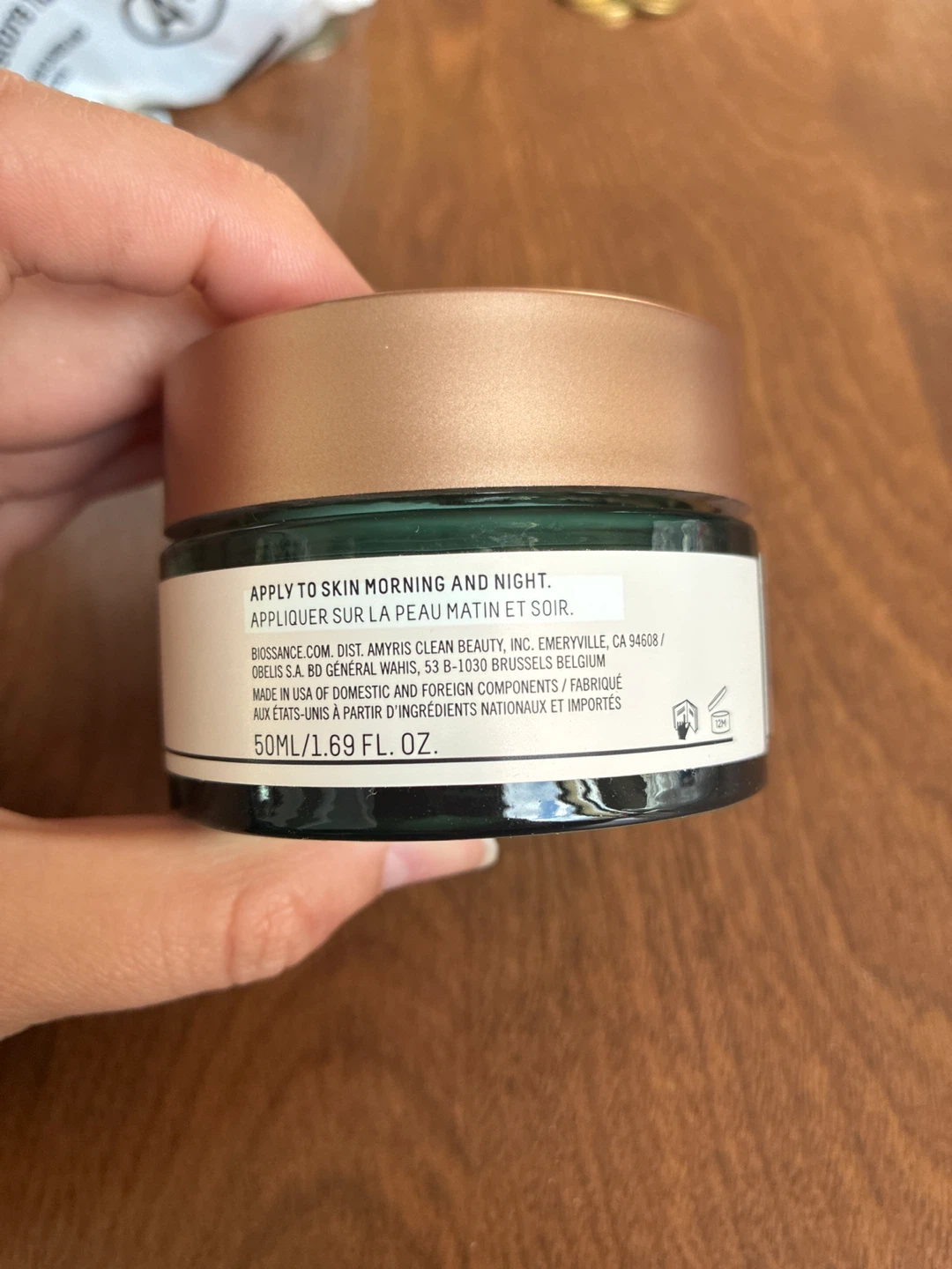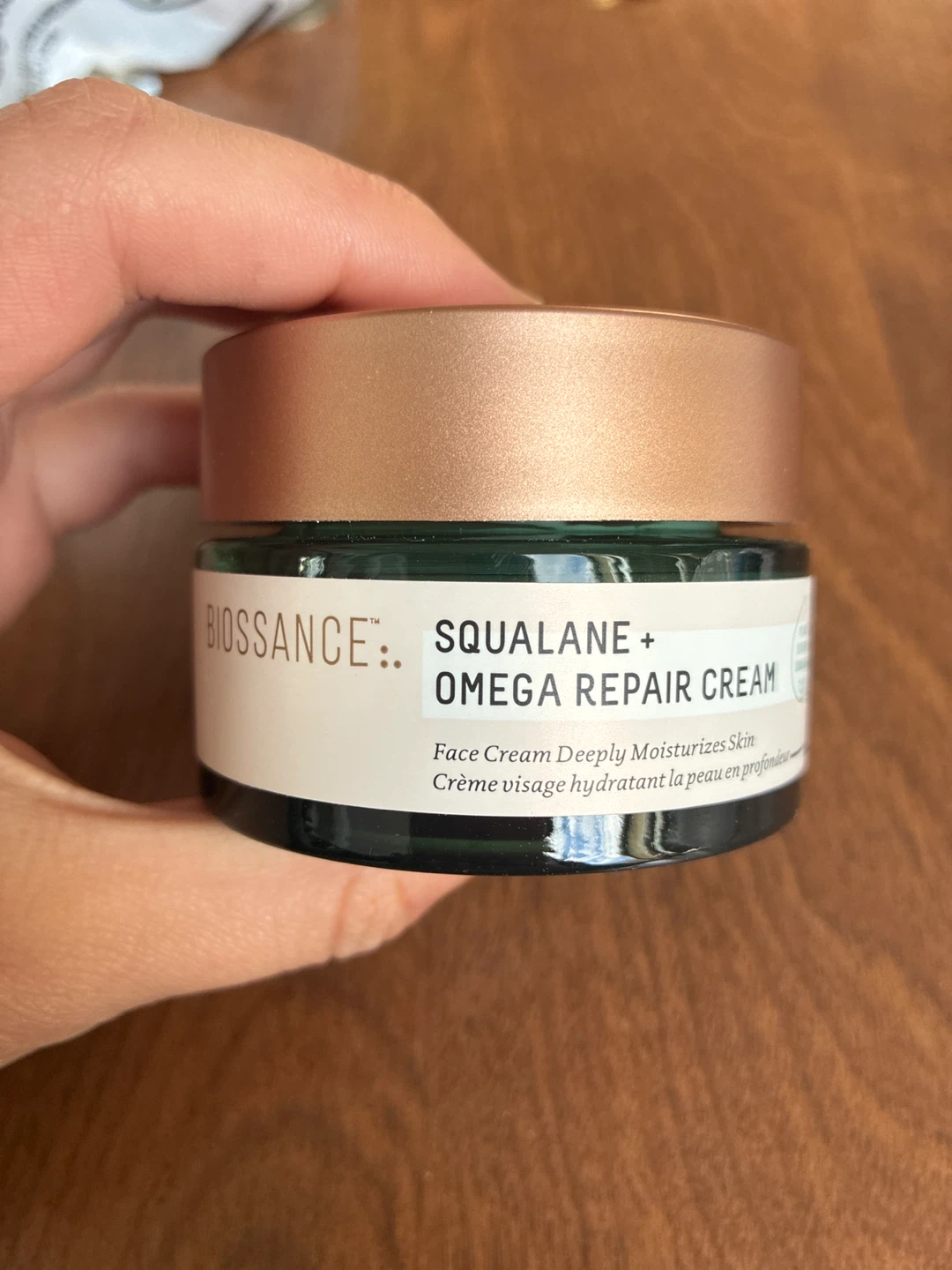 Selling a jar of Biossance Squalane + Omega Repair Cream. This face cream deeply moisturizes the skin and can be applied in the morning and at night. It comes in a 50mL/1.69 fl oz size.
