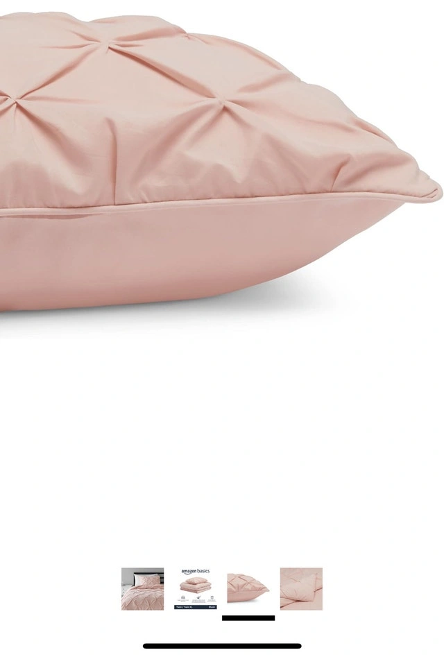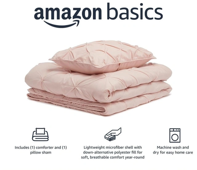 Brand new Amazon Basics comforter set in blush pink. Includes one comforter and one pillow sham. Made with a lightweight microfiber shell and down-alternative polyester fill for year-round comfort. This item is new and has never been used. For Sale By: Owner. Cash accepted.