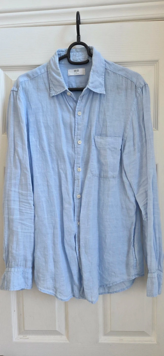 Uniqlo Men's Light Blue Linen Button-Up Shirt