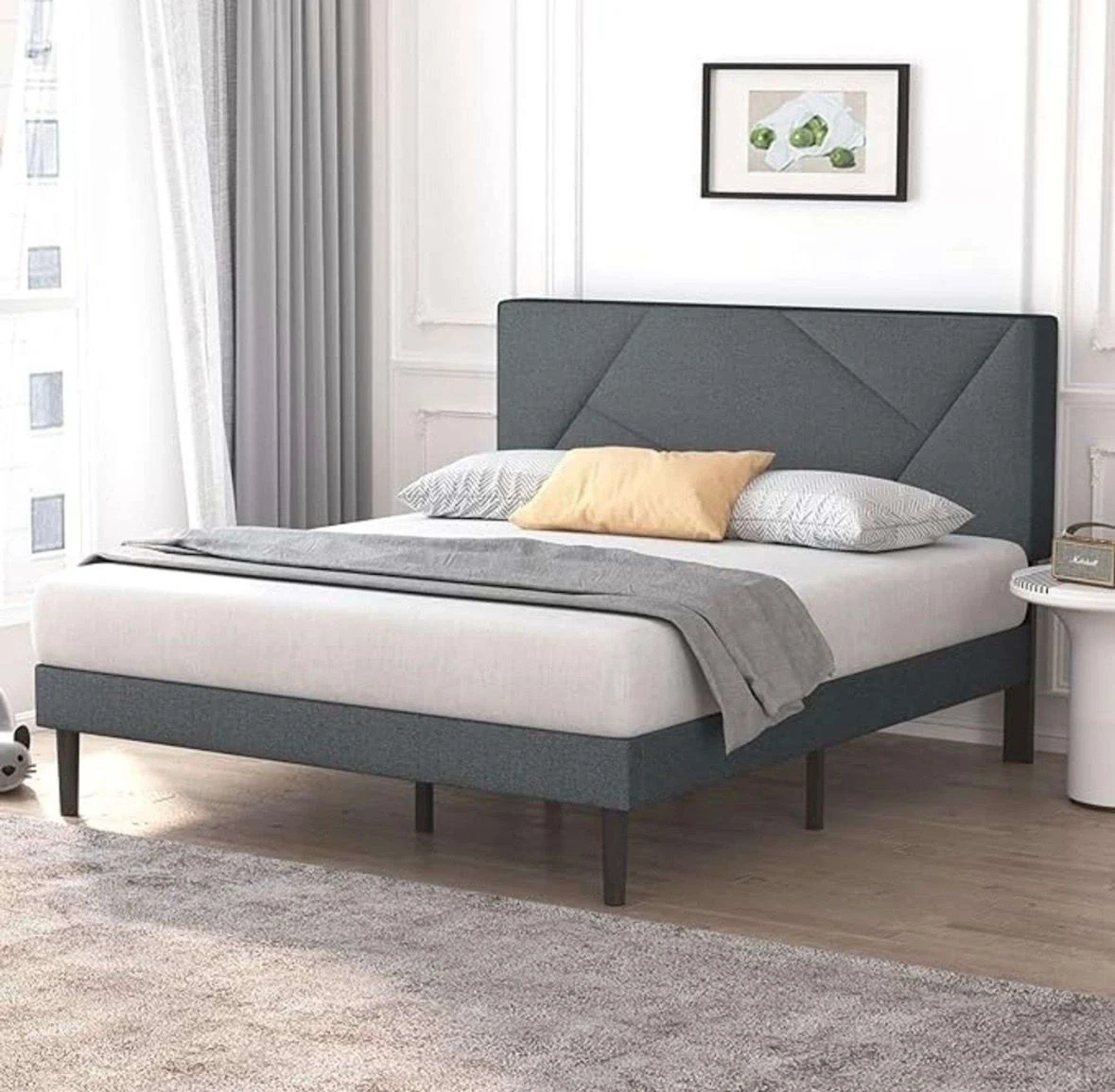 Queen Size Bed Frame with Headboard - Grey Fabric