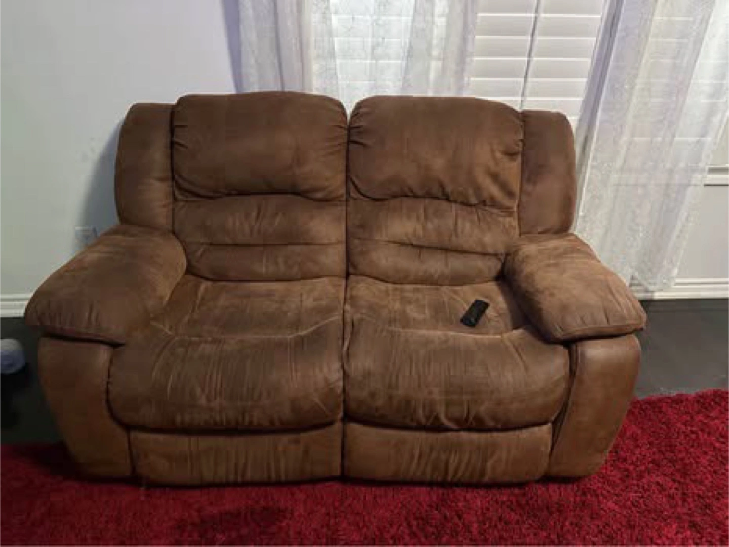 Selling a comfy brown reclining sofa and loveseat. Perfect for a cozy living room setup! They've been well-loved and are ready for a new home. Lowest I can go is 200