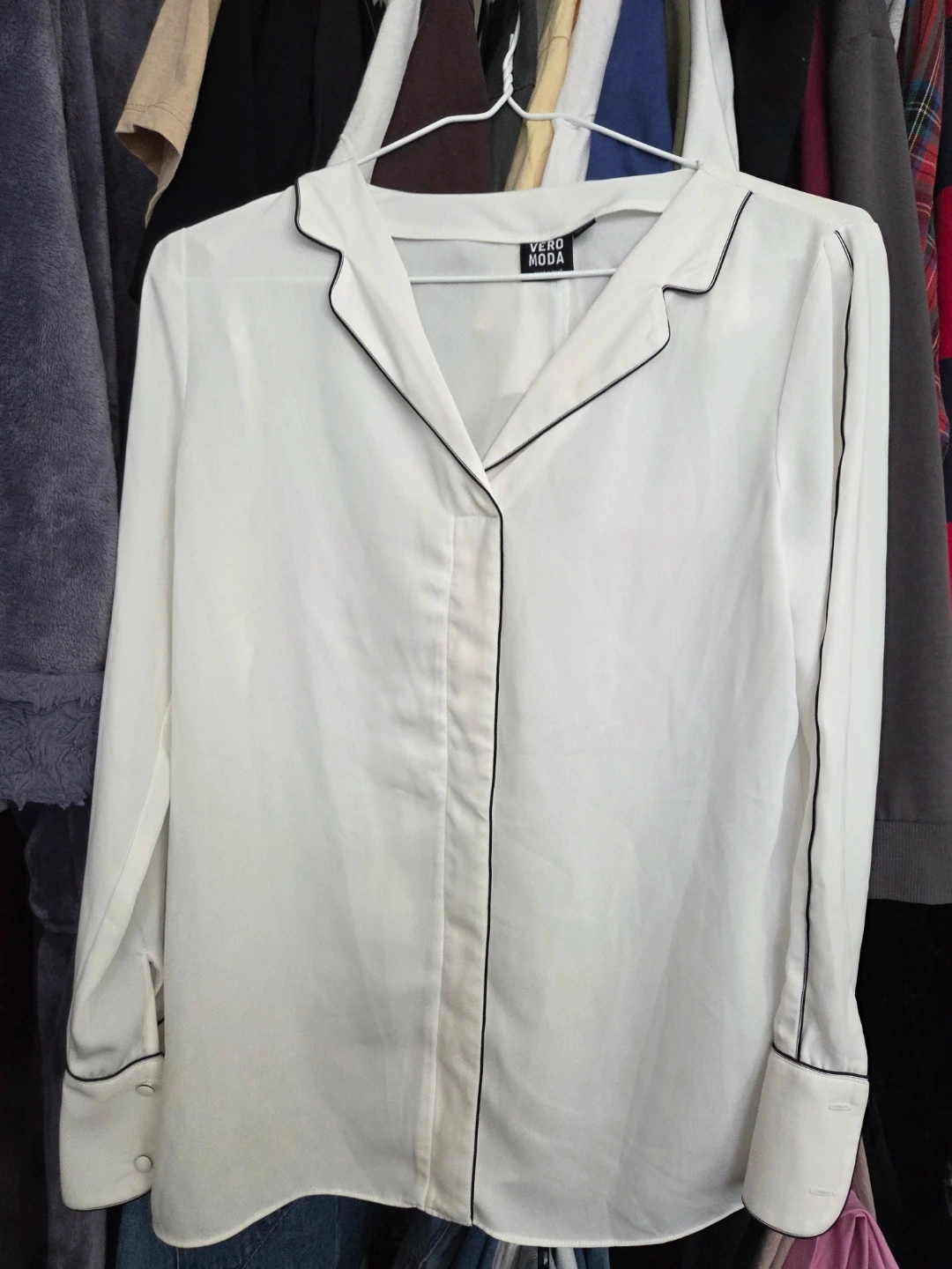 Buy & SellVero Moda White Blouse with Black Trim DetailsVero Moda White Blouse with Black Trim Details$8This Vero Moda blouse is white with black trim detailing. Made from a lightweight fabric, it's suitable for various occasions. Size: 155/76AConditionLike newWHERE TO MEETCheck LocationView MapSELLERverifiedChrisEntertainment District71073 reviews0 chats·0 favorites·13 viewsSEND CHAT TO SELLERHi Chris! I’m interested in your listing.Hi Chris! I’m interested in your listing.Get the Karrot app to chatSign In to chat