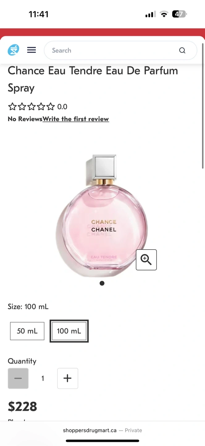 Selling a bottle of Chance Chanel Eau Tendre. It's a 100 mL bottle. Retails for $228 plus tax. (257)