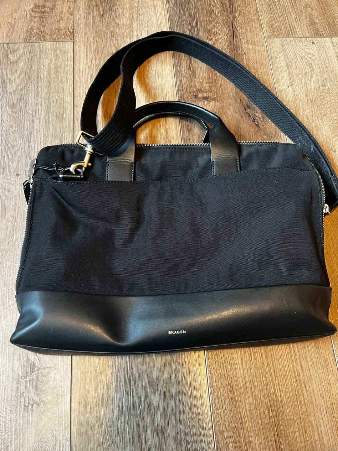 10Selling a Skagen laptop bag in black. It features a combination of leather and canvas materials. It's in great shape and ready for a new home!