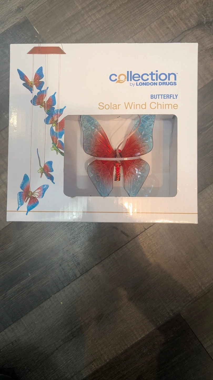 This solar wind chime features a butterfly design. It's solar-powered with a rechargeable AA battery backup and has 7 colour-changing light effects. Includes an ON/OFF switch and a rechargeable AA battery. Dimensions are 13 x 13 x 70cm.