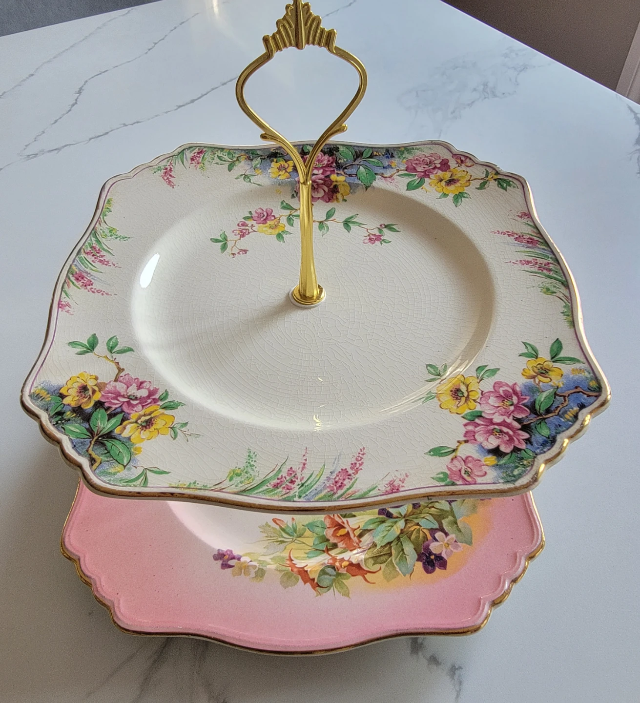 Vintage 2-Tier Cake Stand with Floral Design