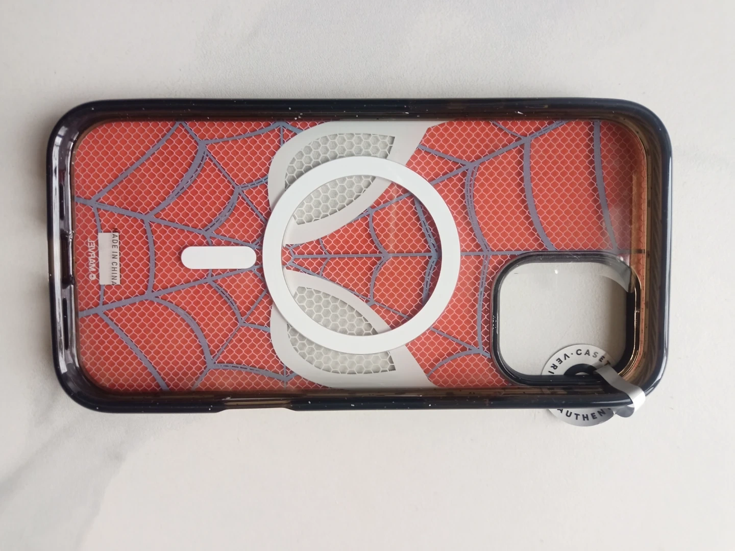 This is a Casetify brand iPhone case featuring Spider-Man. The case has a vibrant Spidey web design.