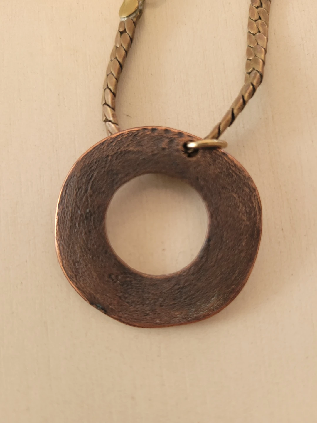 1 / 41 / 4Buy & SellHammered Copper Pendant NecklaceHammered Copper Pendant Necklace$5This necklace has a hammered copper circle pendant on a braided metal chain. As seen in the photos, the necklace has some tarnish.ConditionOkayWHERE TO MEETVintage Cat Cafe TorontoView MapSELLERverifiedMichaelaCorso Italia-Davenport73860 reviews0 chats·1 favorites·21 viewsSEND CHAT TO SELLERHi Michaela! I’m interested in your listing.Hi Michaela! I’m interested in your listing.Get the Karrot app to chatSign In to chat