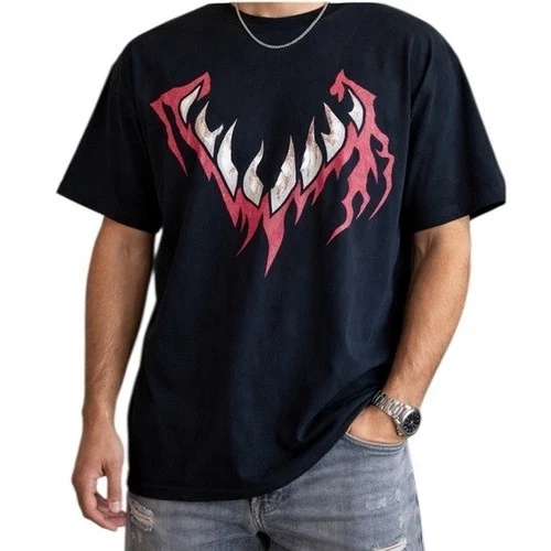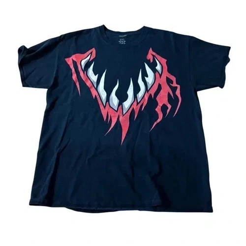 Stylish black t-shirt featuring a bold red and white graphic design. This is a vintage WWE Finn Balor Demon T-shirt, 100% cotton. Size Large, Pit to pit: 20”, Length: 26”. Feel free to message if you have any questions!