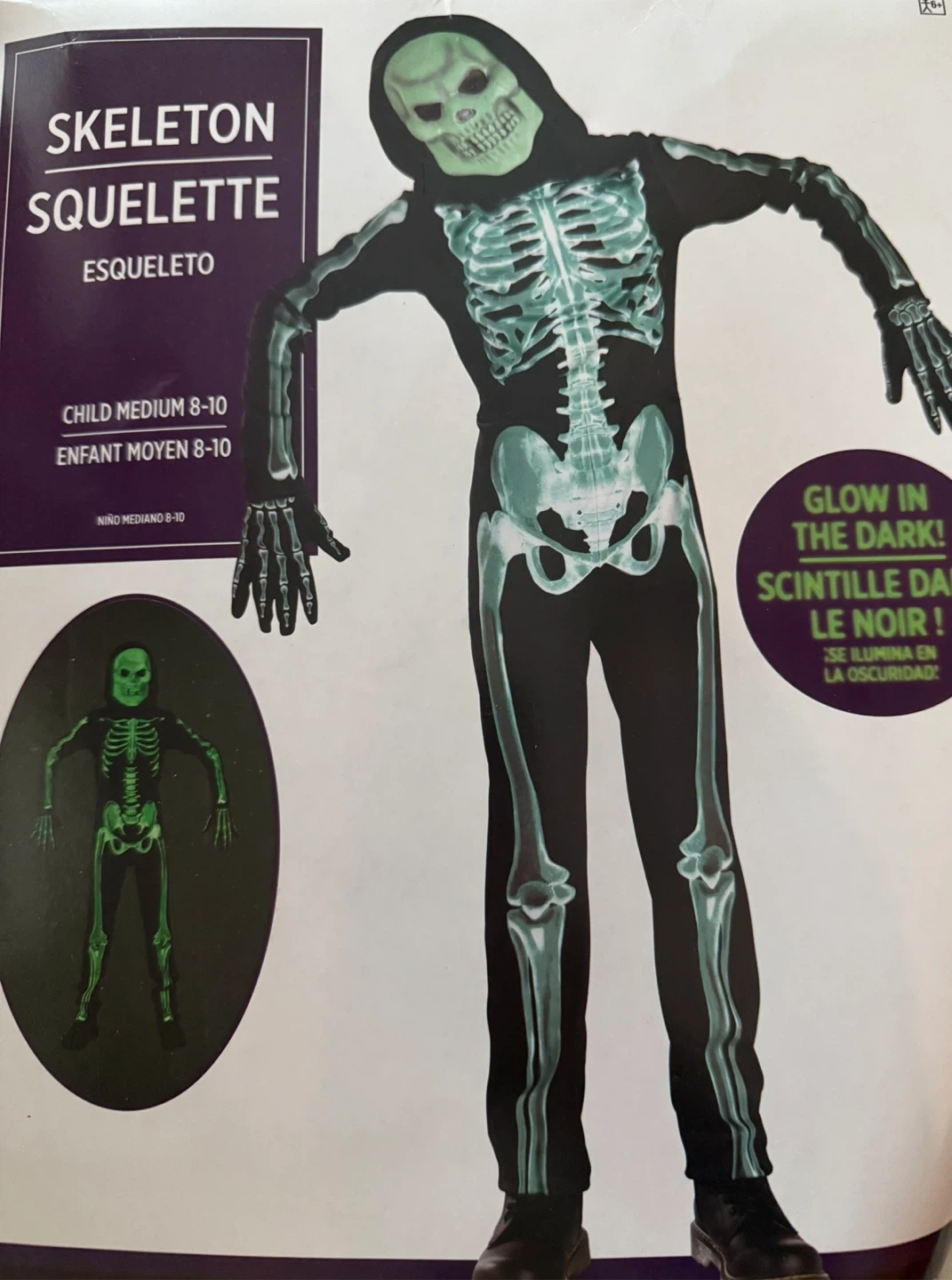 11Selling a child's skeleton costume, size medium (8-10). Gloves not included. It even glows in the dark! Perfect for Halloween or dress-up