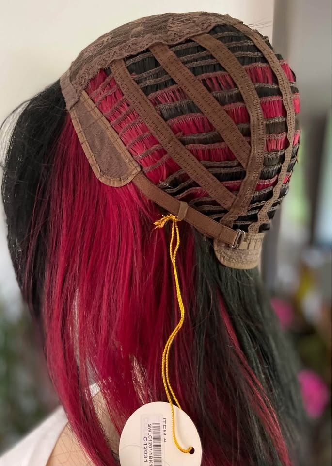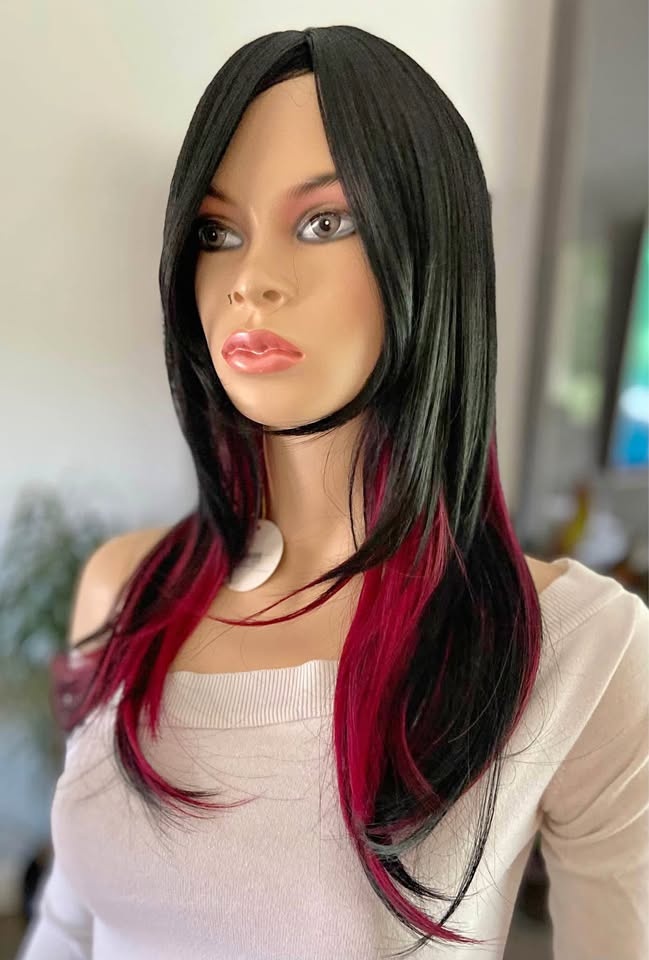 NWT: 18” Long Layered Black & Burgundy Red Wine Synthetic Cosplay Wig with Long Bangs (2284)