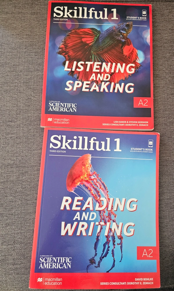 Selling two Skillful 1 Student's Books, Third Edition. One is for Listening and Speaking, and the other is for Reading and Writing. Both are A2 level and published by Macmillan Education in collaboration with Scientific American. Perfect for anyone looking to improve their English skills