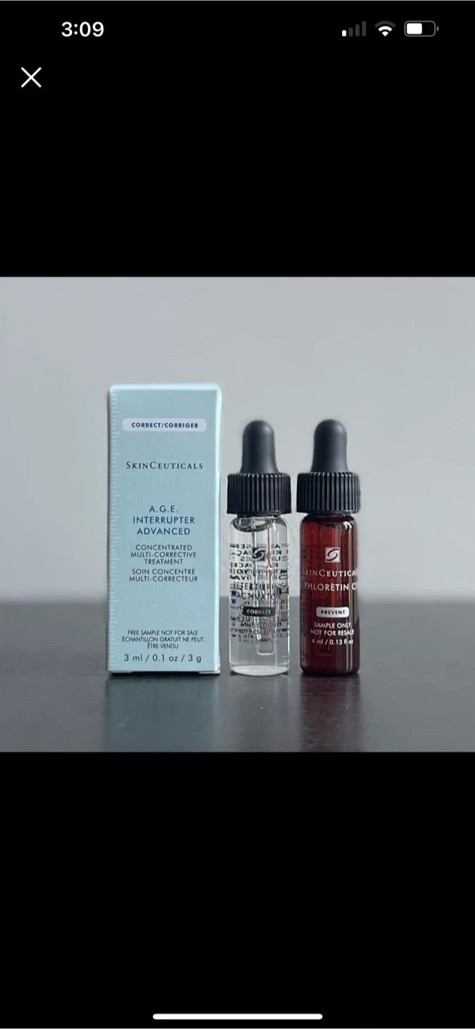SkinCeuticals discovery set includes: • Phloretin CF 4ml • Retexturizing Activator 4ml • A.G.E. Interrupter Advanced 3ml