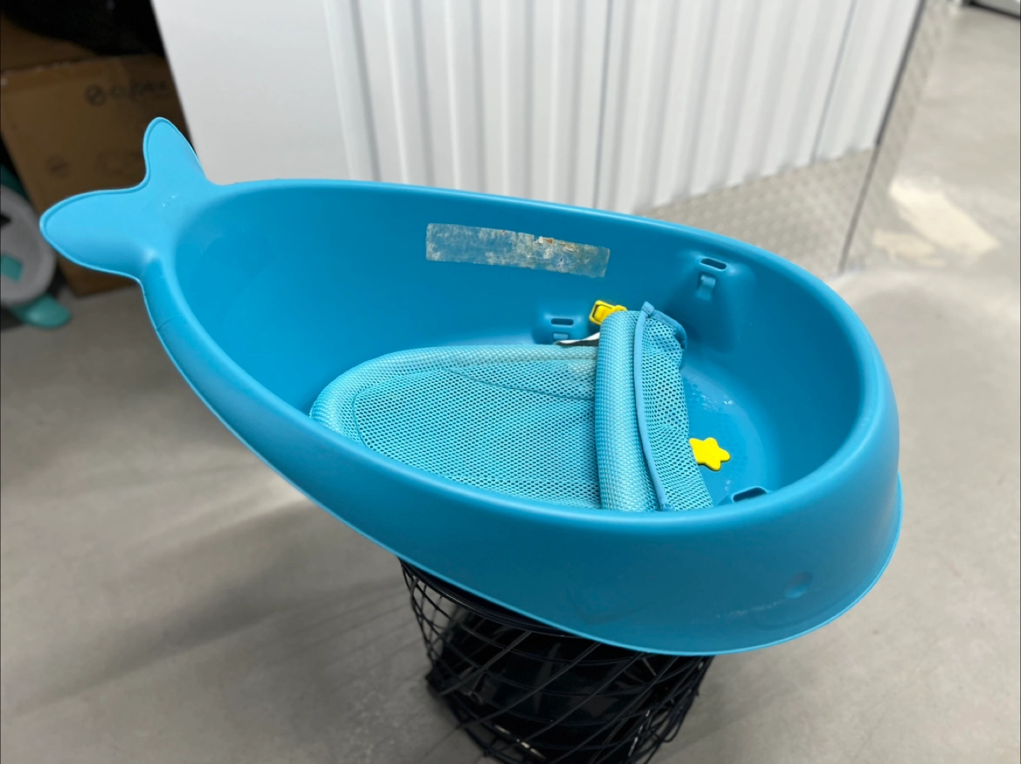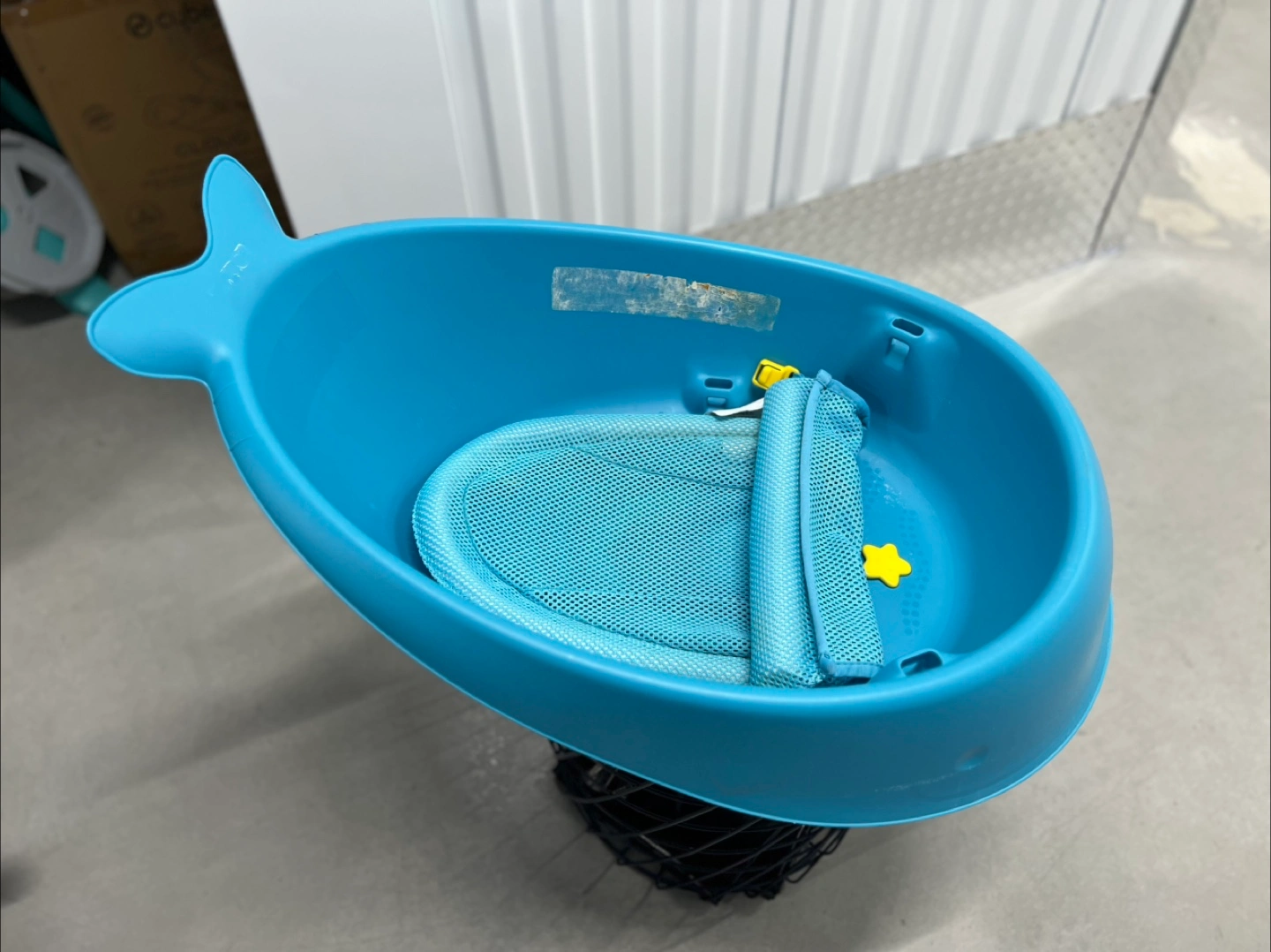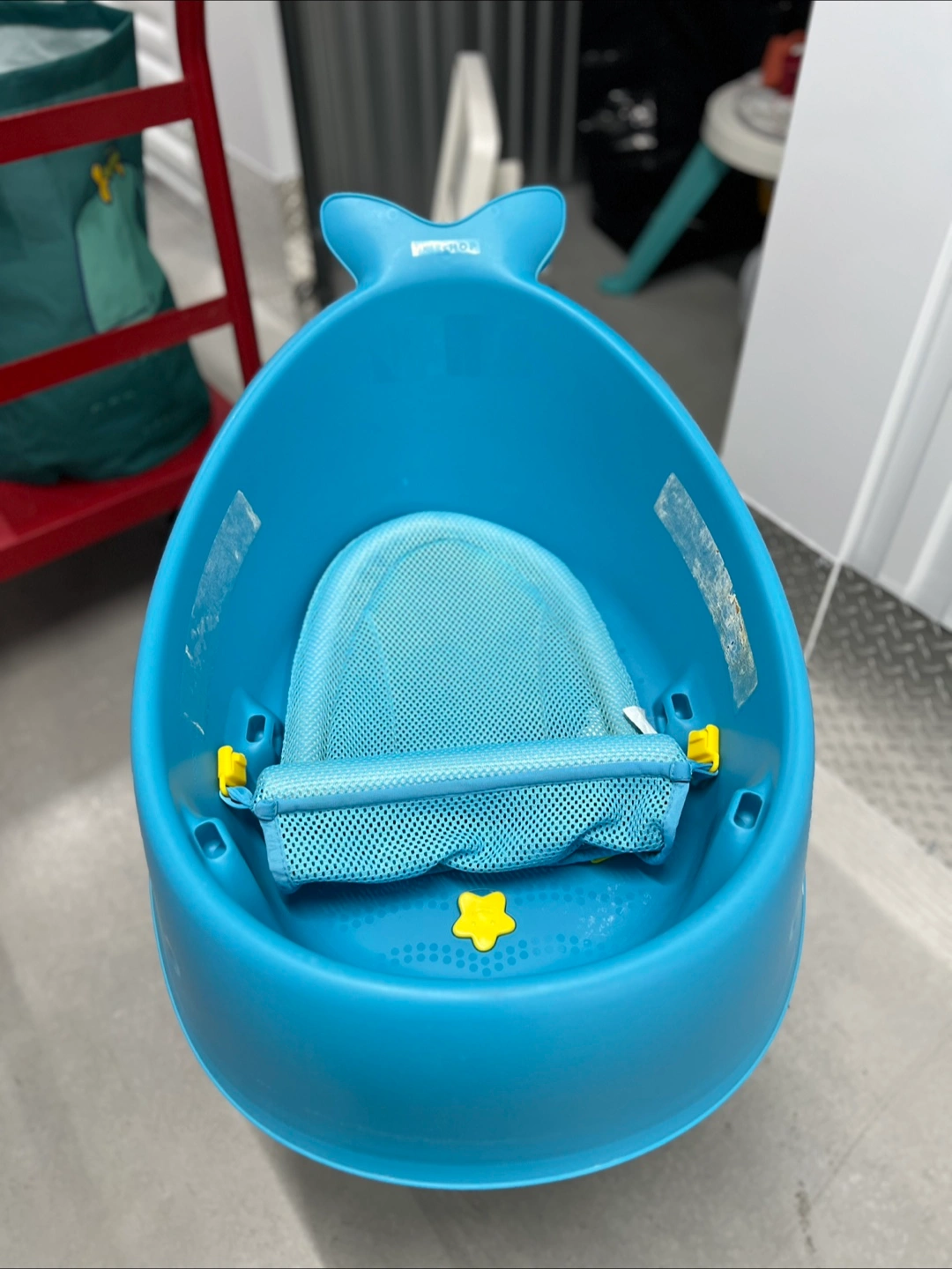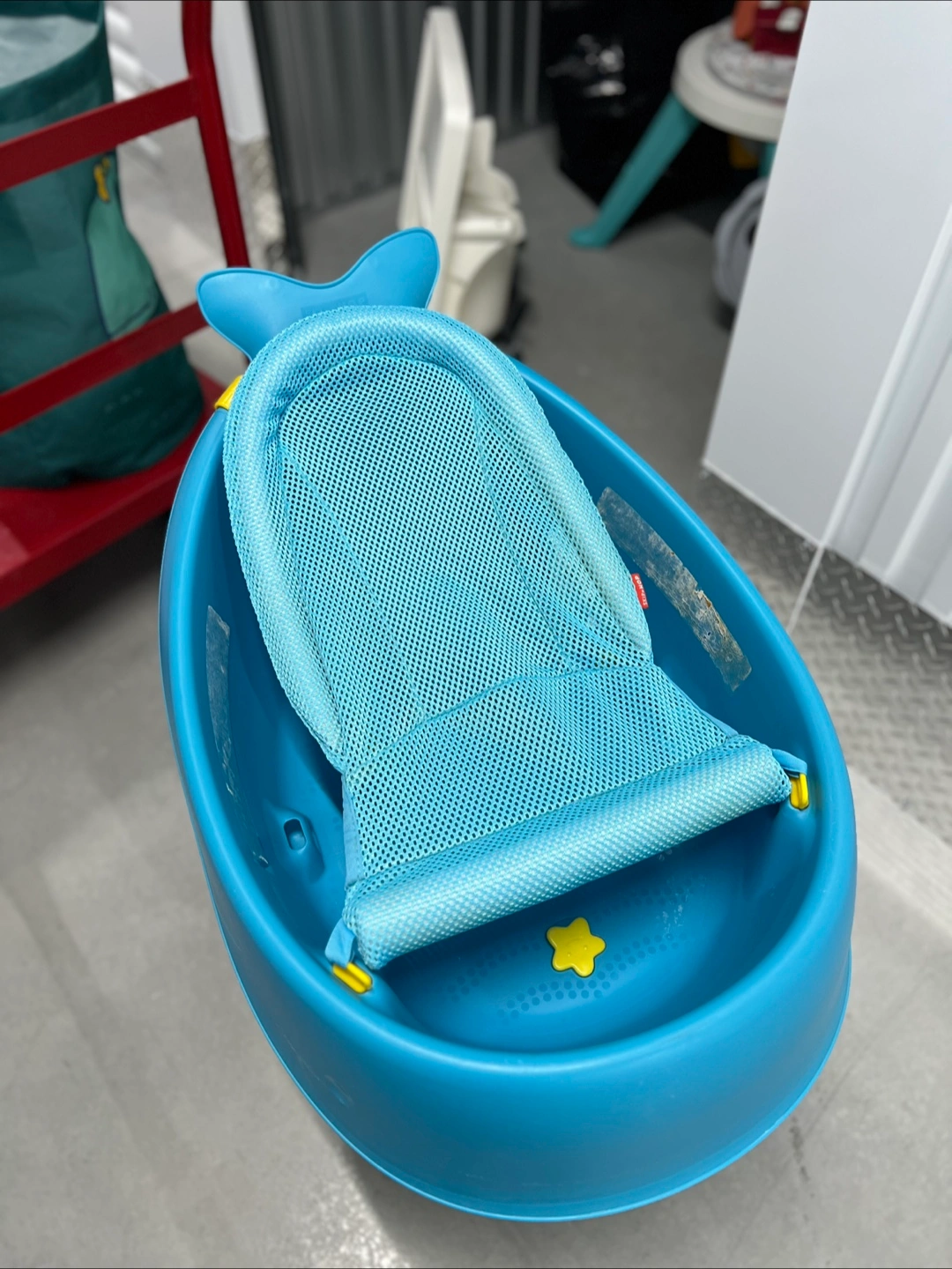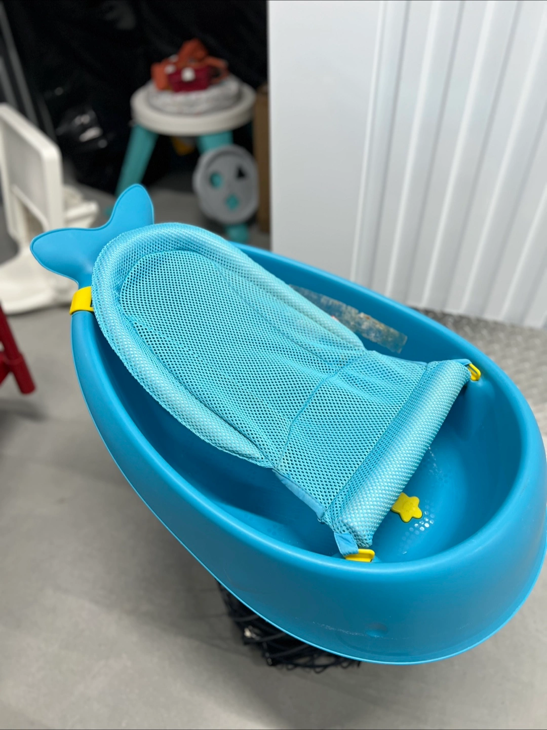 Selling a Skip Hop Moby baby bathtub in great condition! It's shaped like a cute blue whale and has a mesh sling to keep your little one comfy during bath time. Perfect for newborns and infants!