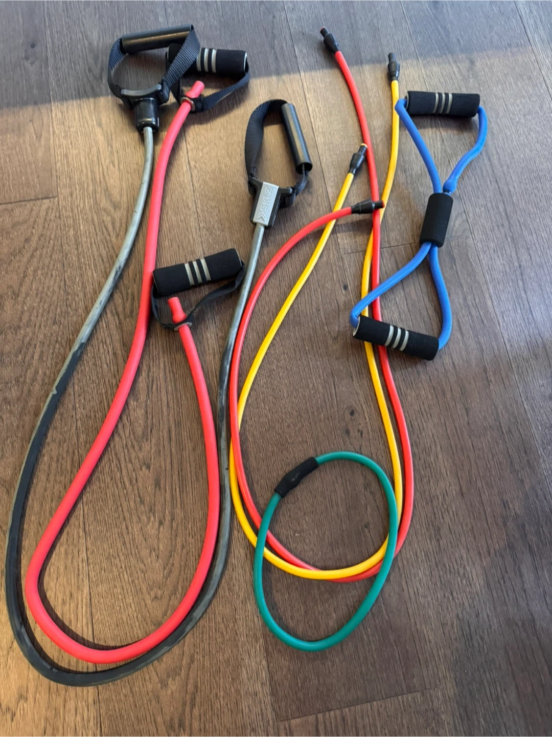 10Get a full body workout with this set of SKLZ resistance bands! Includes various resistance levels in different colours: black, red, yellow, green, and blue. Perfect for home workouts or taking on the go