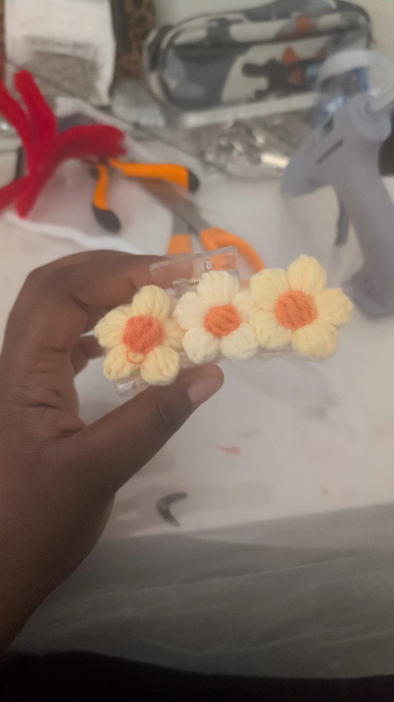 Sweet crocheted hair clip set featuring flowers.. These clips are a fun accessory to add some flair to your hairstyle. They're handmade and perfect for adding a touch of charm!