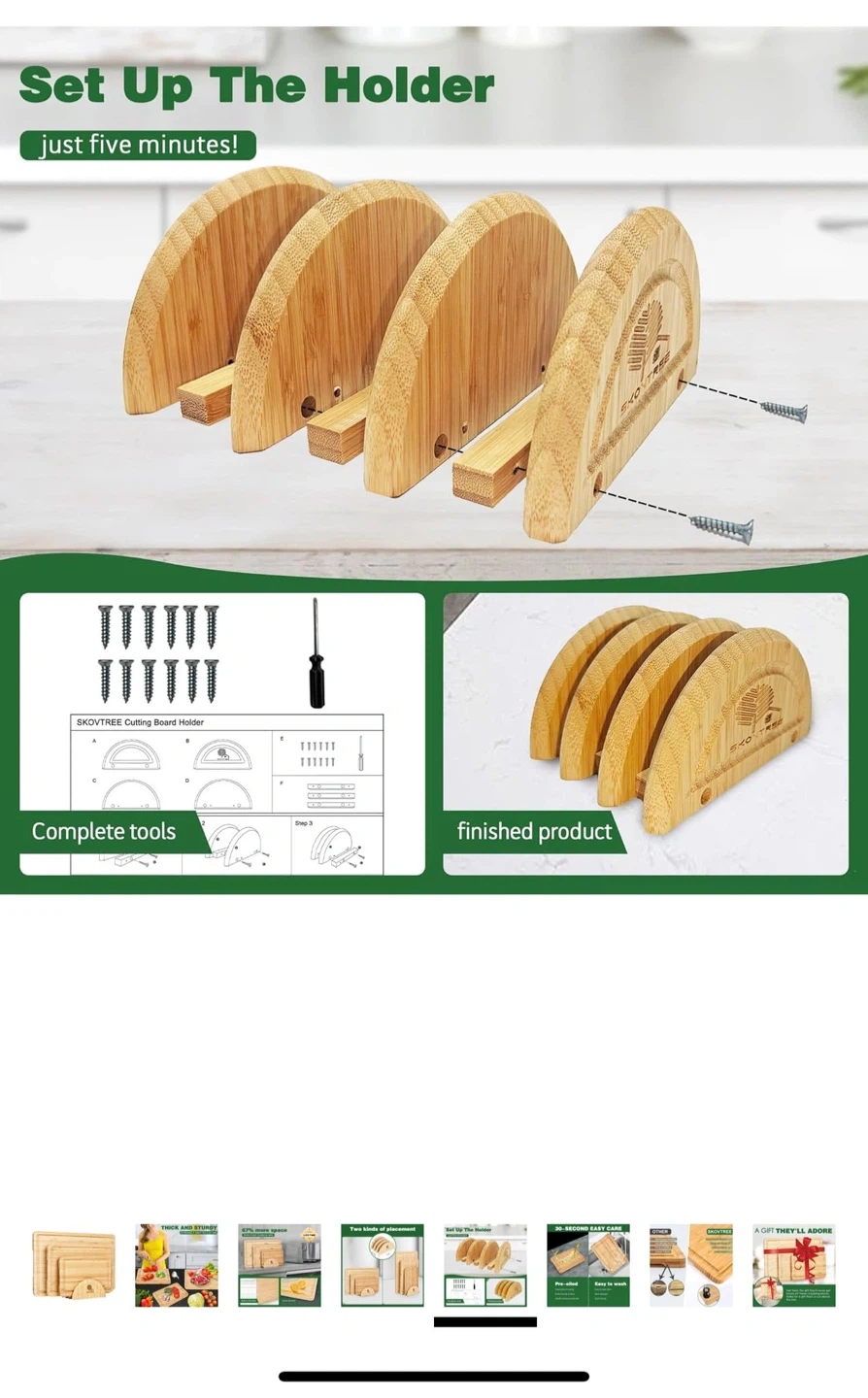5Looking to upgrade your kitchen? I'm selling a Skontree bamboo cutting board set. The set includes multiple sizes and a convenient stand for storage. The boards are made from side-pressed bamboo, which makes them stable, sturdy, and long-lasting! Perfect for any home chef