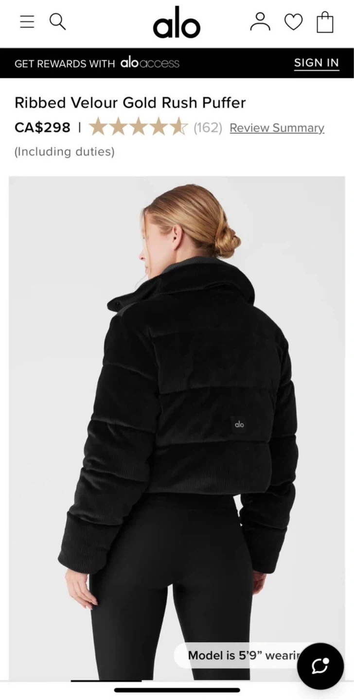 Alo Ribbed Velour Gold Rush Puffer Jacket - Size M